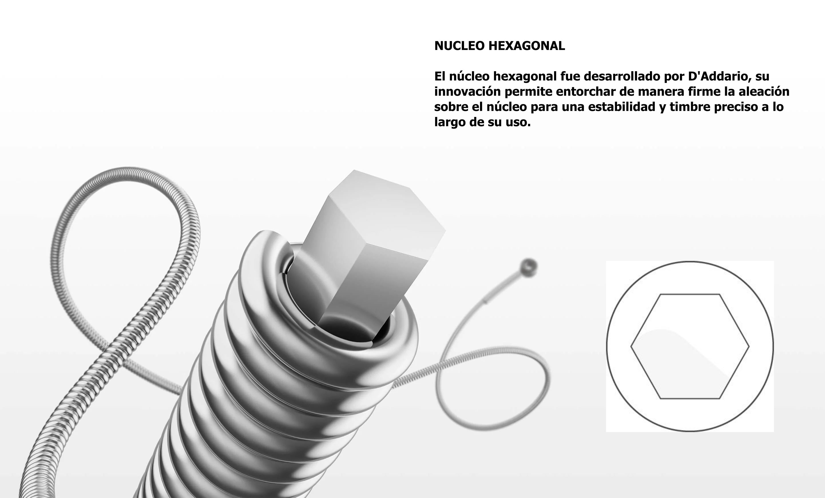 Fabricadas con núcleo de acero de alto carbono y entorchado de acero niquelado, las EXL190 ofrecen estabilidad de afinación, resistencia al desgaste y una sensación precisa al tacto. Su núcleo hexagonal permite un ajuste firme del entorchado, resultando en cuerdas duraderas y confiables.