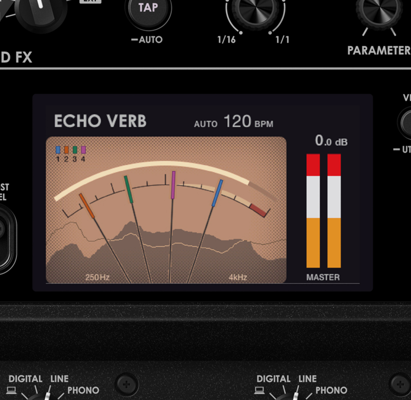 El aislador de tres bandas de última generación transforma la sensibilidad en sonido puro. Con perillas dimensionadas para una manipulación rápida, permite esculpir el retorno de forma drástica o sutil. La innovadora función Boost Send permite aplicar efectos de la sección Send FX (como Delay, Reverb o Shimmer) directamente a la banda de frecuencia seleccionada en el isolator con una sola mano. Este diseño técnico optimiza el flujo de trabajo en la cabina, liberando la creatividad del DJ para realizar ejecuciones dinámicas y complejas que mantienen a la audiencia conectada con el ritmo de la pista.