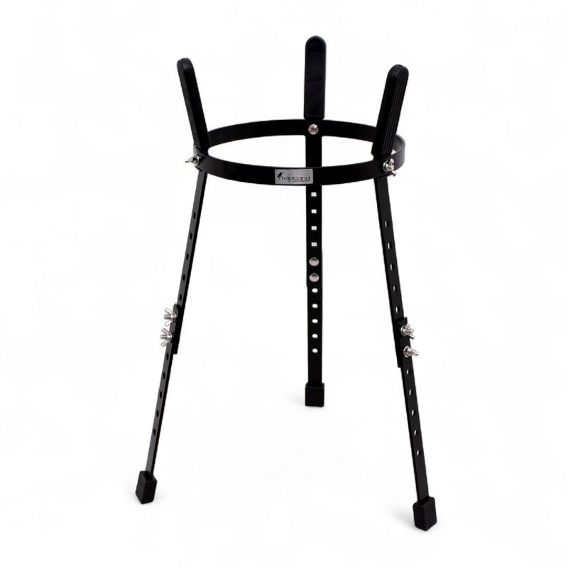 El atril tipo cesta para congas Tropicana es una solución práctica y resistente para fijar una conga de forma segura y cómoda. Su diseño simple pero efectivo, compuesto por un aro metálico y tres patas de acero, permite un centrado perfecto del tambor y una sujeción estable manteniendo un bajo peso total y montaje muy rápido.