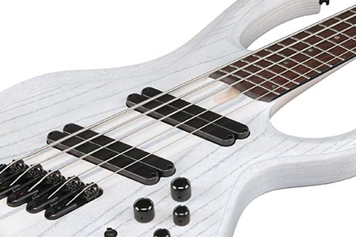 El sistema Ibanez Custom Electronics EQ de 3 bandas proporciona un control de sonido sin complicaciones. Lo destacable es su capacidad de Boost y Cut del control de medios centrado en frecuencias ligeramente diferentes, ofreciendo un rango de tonos de bajo preestablecidos que son musicalmente favorables. Para el purista, el interruptor de bypass del EQ convierte el sistema en un circuito pasivo, donde el control de agudos se convierte en un control de tono global. Esta flexibilidad Activo/Pasivo lo convierte en un bajo ultra-versátil.