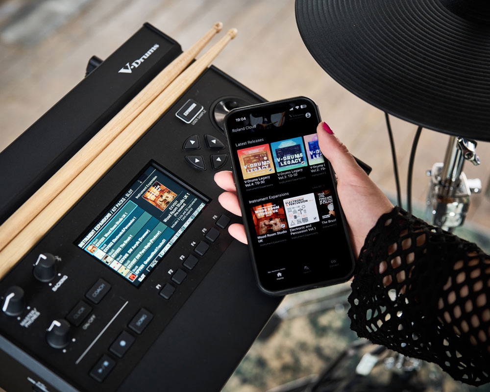 El conjunto de sonidos del V31 puede actualizarse y personalizarse en cualquier momento. A través de la app Roland Cloud Connect, es posible explorar, descargar e instalar V-Drums Instrument Expansions directamente en el módulo mediante conexión inalámbrica.