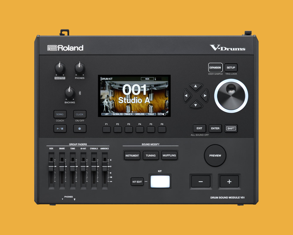 El módulo V51 forma parte de un ecosistema unificado junto a los V71 y V31, ofreciendo compatibilidad cruzada total entre los módulos V-Drums. Utiliza la biblioteca central de sonidos desarrollada para la serie V-Drums 7 y se expande mediante contenido de Roland Cloud, incluyendo V-Drums Instrument Expansions multicapa basadas en baterías DW.