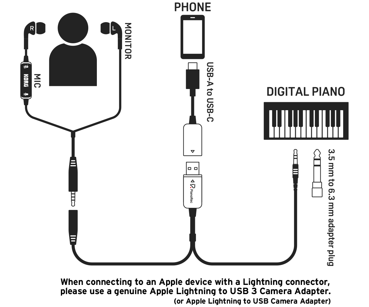 El Korg PianoREC es el accesorio de audio profesional que todo pianista digital necesita para grabar con una calidad impecable. Es una interfaz de grabación directa diseñada para simplificar el proceso de captura de sonido de tu piano digital en tu smartphone. Olvídate de setups complejos, interfaces de audio voluminosas o cables enredados. PianoREC ofrece una solución plug-and-play instantánea, ideal para música en vivo en redes sociales, clases online o simplemente para registrar tu práctica con fidelidad.