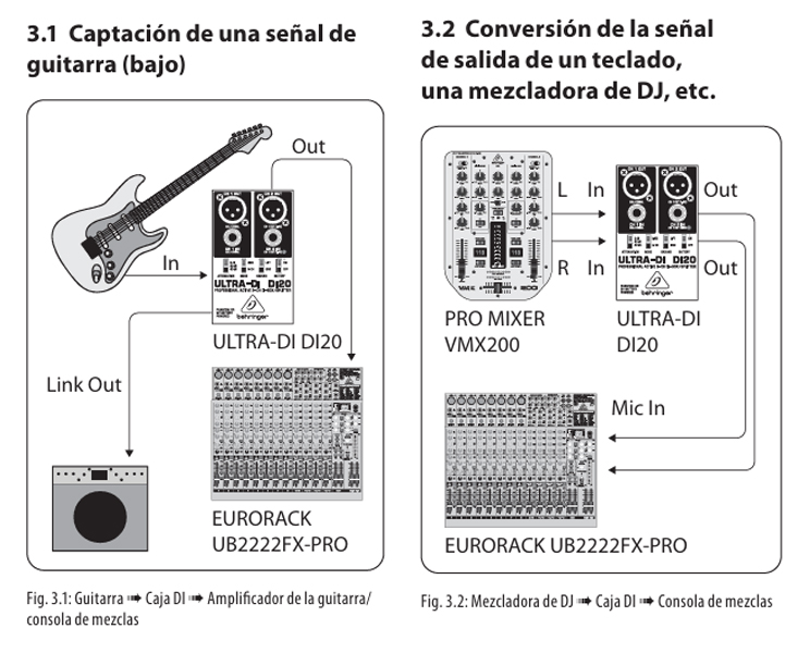La DI20 es una caja directa única que puede operar en tres modos: convertir dos líneas TRS de 6,35 milímetros (1/4 de pulgada) desbalanceadas en dos salidas XLR balanceadas separadas (Modo Estéreo), o enviar un único instrumento a dos destinos simultáneamente (Modo Split). Para el guitarrista o bajista, la función Split es invaluable, ya que permite enviar una señal a un amplificador en el escenario y, al mismo tiempo, alimentar un canal de la mesa de mezcla para sonido en vivo o grabación, manteniendo la integridad del audio.