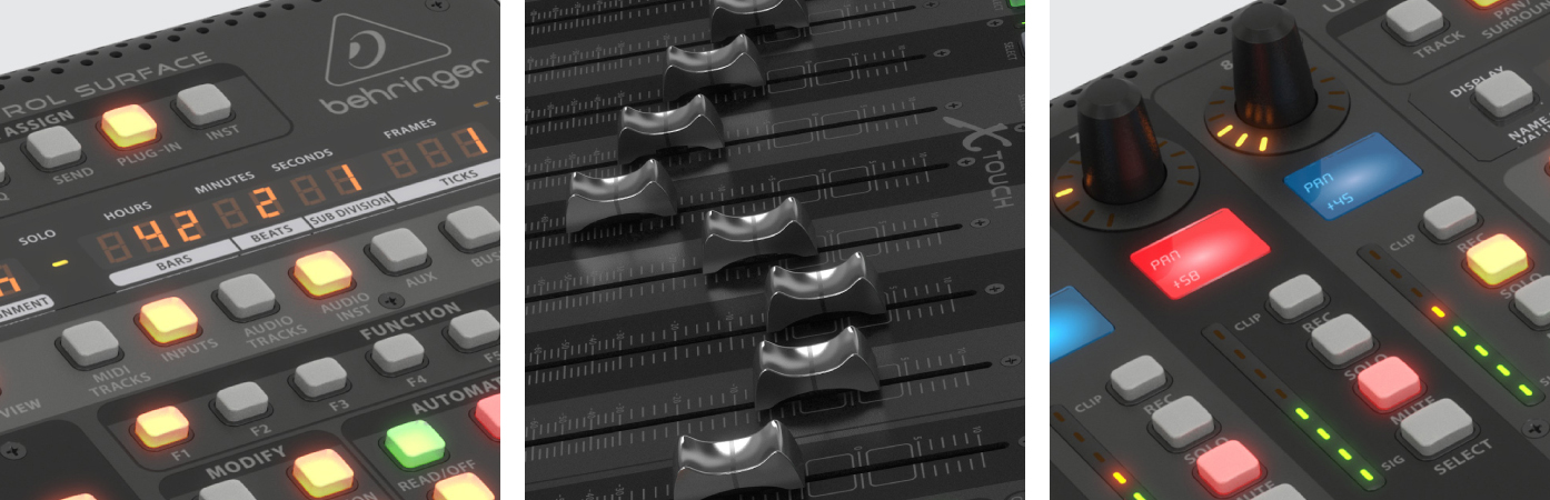 La funcionalidad es la gran fortaleza de este equipo. Con soporte para los protocolos HUI y Mackie Control, el X-TOUCH se integra a la perfección con la mayoría de los programas de producción musical, desde los más conocidos hasta los más especializados. Con sus 92 botones iluminados, 8 controles giratorios con collares LED y el jog/shuttle wheel, tienes un control directo e intuitivo sobre todas las funciones de tu DAW, desde el transporte hasta el paneo y los envíos de efectos.