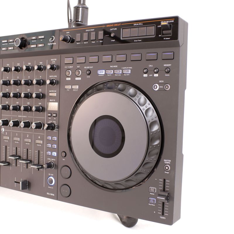 El DDJ-GRV6 cuenta con grandes jog wheels que son ideales para hacer scratch, 8 Performance Pads que están ubicados sobre los jogs (tal como están en el multireproductor insignia CDJ-3000) y Beat FX de la DJM-A9 en la sección del mezclador. Todo esto significa que puedes tocar con una sensación similar a la de usar equipo estándar para discotecas y tocar de manera dinámica combinando scratching expresivo con técnicas de pads y efectos que son perfectas para sets en discotecas.