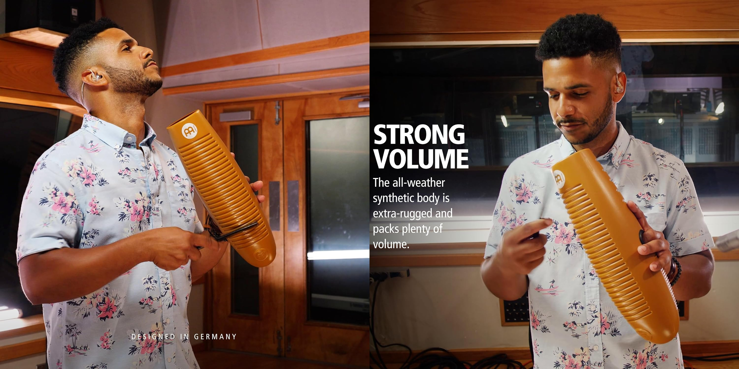 El diseño del Güiro Meinl Turbo Guiro GU9 está pensado para la comodidad y la eficiencia. Los agujeros de agarre con anillos de goma proporcionan un agarre seguro y confortable, minimizando la fatiga durante largas sesiones de toque. Esta ergonomía es vital para que el músico pueda concentrarse en el ritmo y la técnica sin preocuparse por la sujeción del instrumento de percusión.