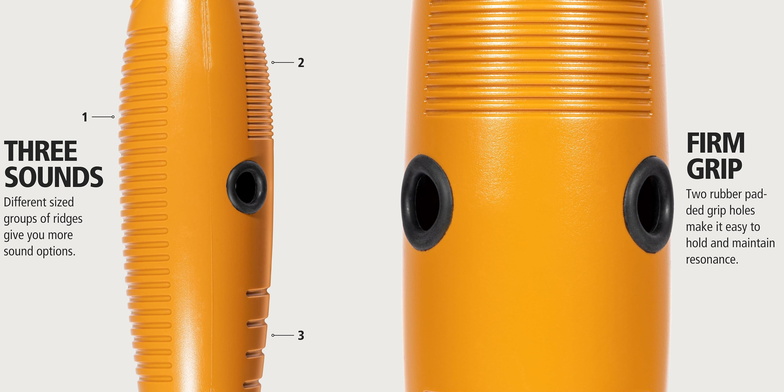 La característica más notable de este güiro son sus tres superficies de raspado con diferentes texturas, que permiten al percusionista explorar una amplia gama de timbres y efectos sonoros con un solo instrumento. Esto es un valor agregado enorme para el músico que necesita versatilidad sin llevar múltiples instrumentos.