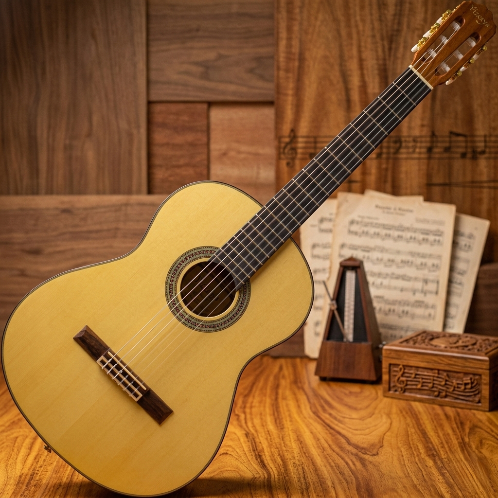 Más allá de su sonido, este instrumento cautiva por su presencia visual y la calidad de sus accesorios. El acabado brillante no solo protege las maderas de la humedad ambiental, sino que resalta las vetas naturales del sapele, otorgando un aspecto lujoso y profesional. El hardware dorado de las clavijas estándar aporta una estética distinguida que se complementa con la precisión necesaria para realizar ajustes finos en la tensión de las cuerdas de nylon. Es una guitarra equilibrada que combina la funcionalidad técnica de un equipo de audio de alta gama con la belleza atemporal de un instrumento de cuerdas bien fabricado, posicionándose como la opción preferida para quienes buscan dar el siguiente paso en su carrera musical.