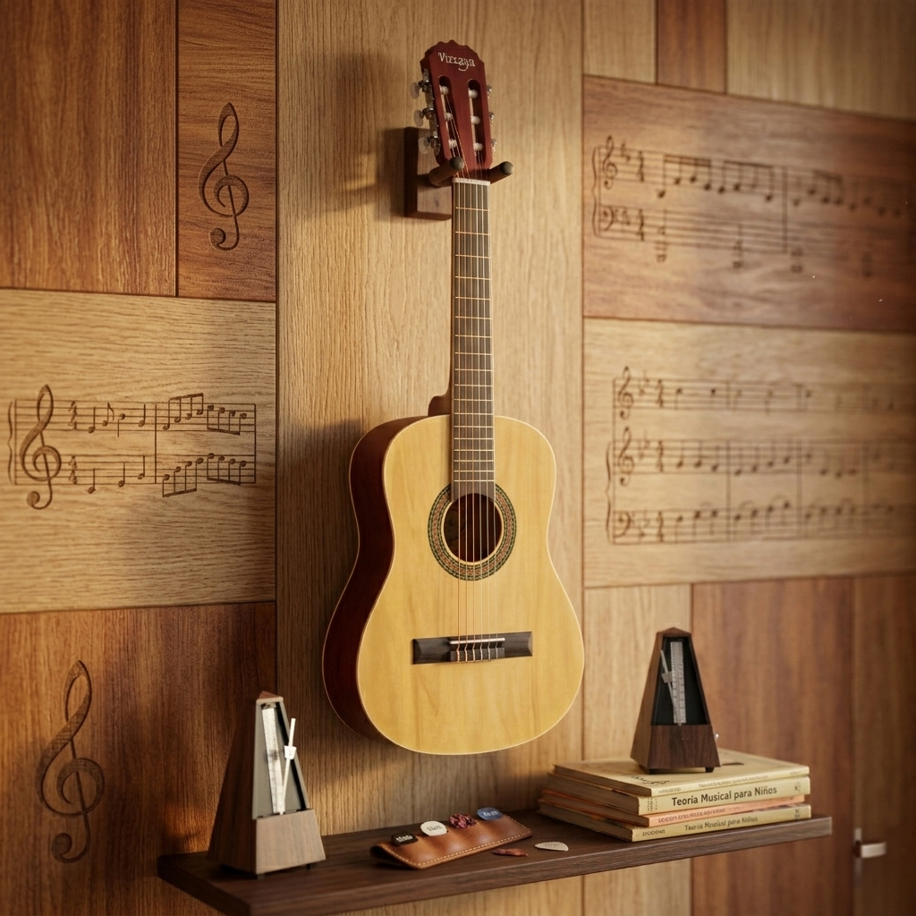 La Vizcaya 1/2 ARCG12 está construida con materiales de alta calidad y técnicas de luthería tradicionales. Su cuerpo de tilo y mástil encolado (set-neck) garantizan una estructura sólida y resistente, capaz de soportar los traslados diarios a clases de música y sesiones de práctica intensivas. El hardware de níquel y las clavijas standard de alta precisión aseguran una afinación estable y duradera, permitiendo a los niños concentrarse en su interpretación sin preocuparse por los ajustes técnicos del instrumento. Esta guitarra clásica es una inversión duradera que acompañará a los pequeños músicos en su viaje artístico por años.