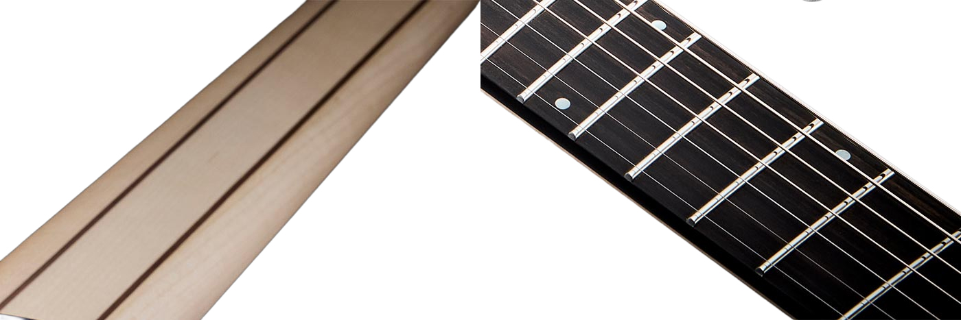 Además, su innovadora unión del mástil de tres tornillos con placa de acero inoxidable mejora el acceso a los trastes altos y fortalece la transferencia de energía hacia el cuerpo, asegurando que el retorno sonoro sea siempre contundente y definido.