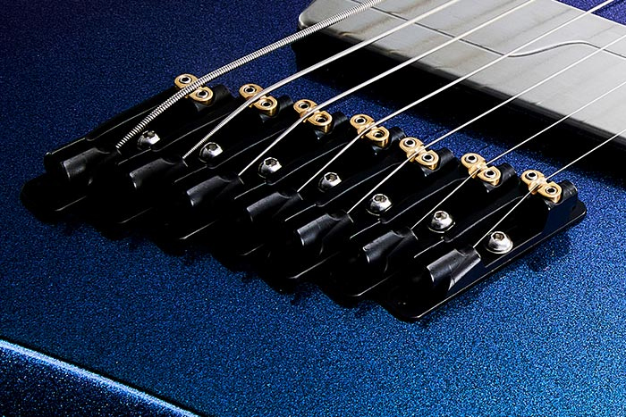 El puente Mono-rail G2 es otro componente crítico, diseñado para aislar la vibración de cada cuerda de forma independiente; esto minimiza la interferencia entre notas y proporciona una separación de cuerdas superior, algo vital en las afinaciones bajas de una 7 cuerdas.