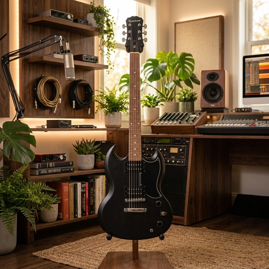 La Epiphone SG Special Satin E1 en acabado Vintage Ebony no es solo una guitarra eléctrica de cuerpo sólido, es un portal a la historia del rock duro. Al heredar las líneas agresivas y el legendario diseño de doble corte que ha dado forma a innumerables himnos, este instrumento ofrece la estética inconfundible de la SG con un enfoque moderno y accesible. Su acabado Vintage Worn negro no solo le otorga un aspecto mate sofisticado que evita las marcas de huellas dactilares, sino que proporciona una sensación de instrumento con historia, cómodo y listo para ser tocado desde el primer segundo. Es la opción ideal para el guitarrista que busca el prestigio de una marca histórica sin comprometer el presupuesto.