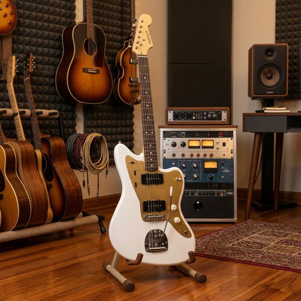 La guitarra eléctrica Freeman JMZ en acabado Olimpic White es la elección definitiva para quienes buscan escapar de lo convencional. Su cuerpo fabricado en Okoumé, una madera valorada por su equilibrio tonal y peso gestionable, ofrece un valor tangible de comodidad excepcional durante largas sesiones de grabación o presentaciones en vivo. Esta configuración asegura una notable durabilidad para el uso diario en traslados, manteniendo la integridad del instrumento mientras ofrece esa silueta Jazzmaster icónica que define a los géneros alternativos, indie y surf rock con una elegancia impecable.