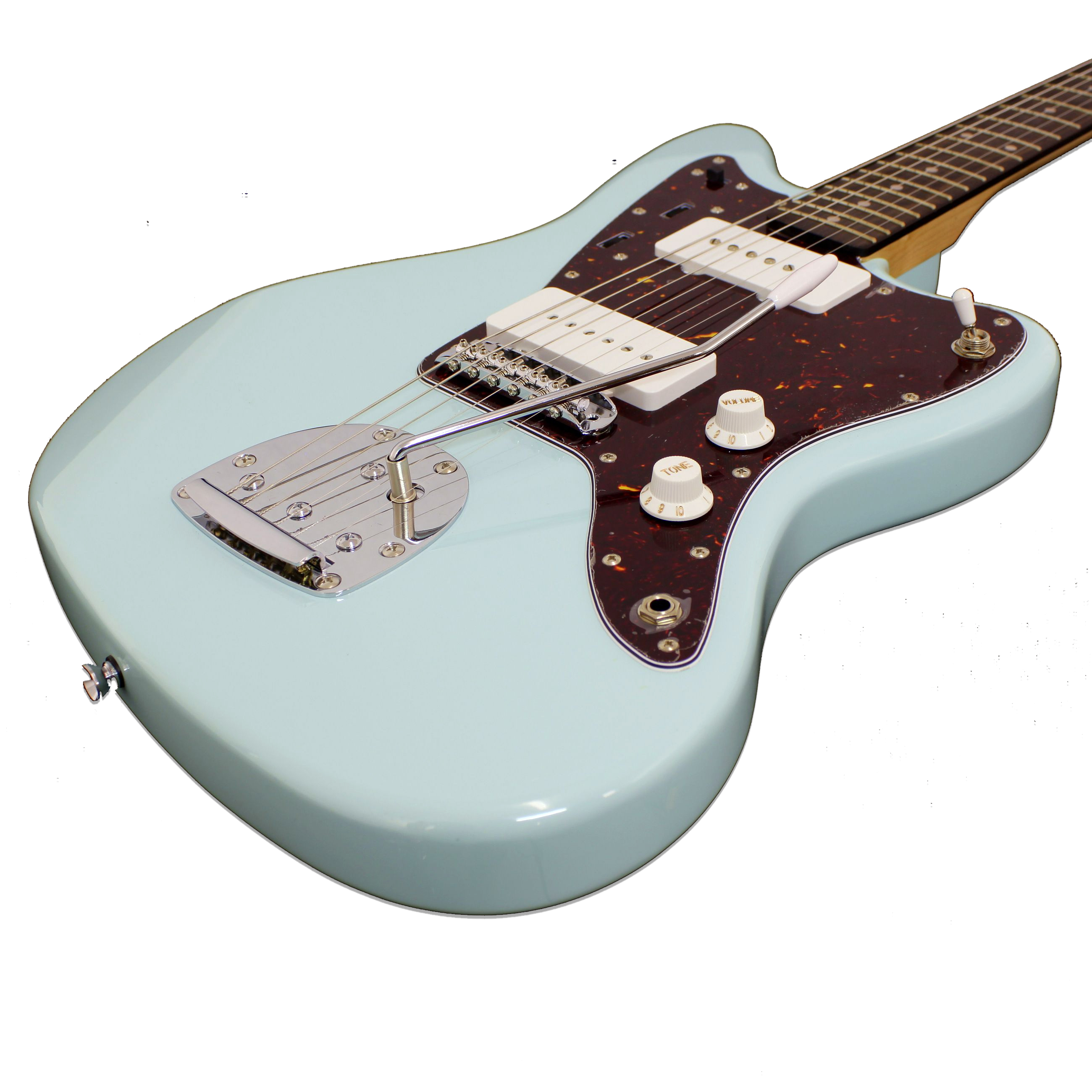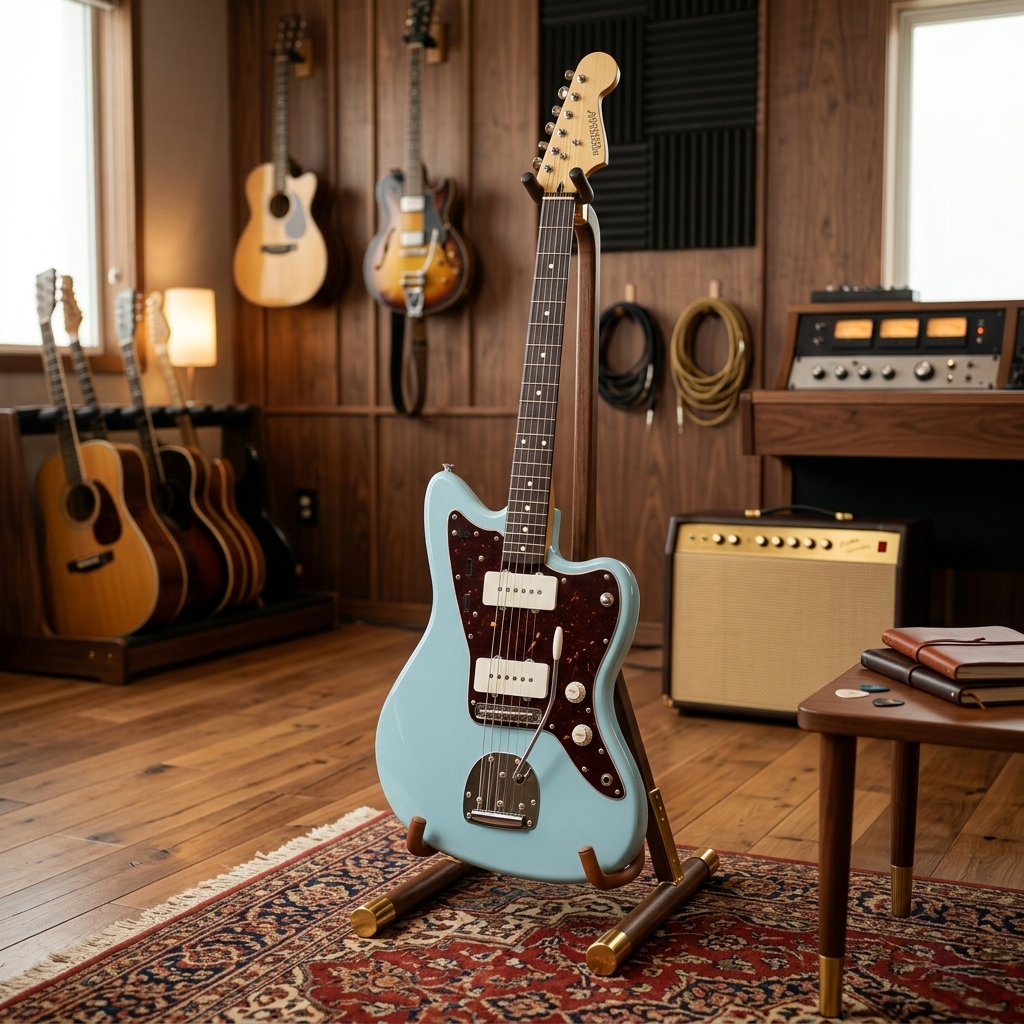 La guitarra eléctrica Freeman Jazzmaster en acabado Seafoam Green es la elección definitiva para quienes buscan escapar de lo convencional con un estilo icónico y refrescante. Su cuerpo fabricado en Okoumé, una madera valorada en el sector del audio profesional por su equilibrio tonal y peso gestionable, ofrece un valor tangible de comodidad absoluta durante largas sesiones de grabación o presentaciones en vivo. Esta configuración asegura una notable durabilidad para el uso diario en traslados, manteniendo la integridad del instrumento mientras proyecta esa silueta clásica que define géneros como el indie, el surf rock y el alternativo con una elegancia impecable.