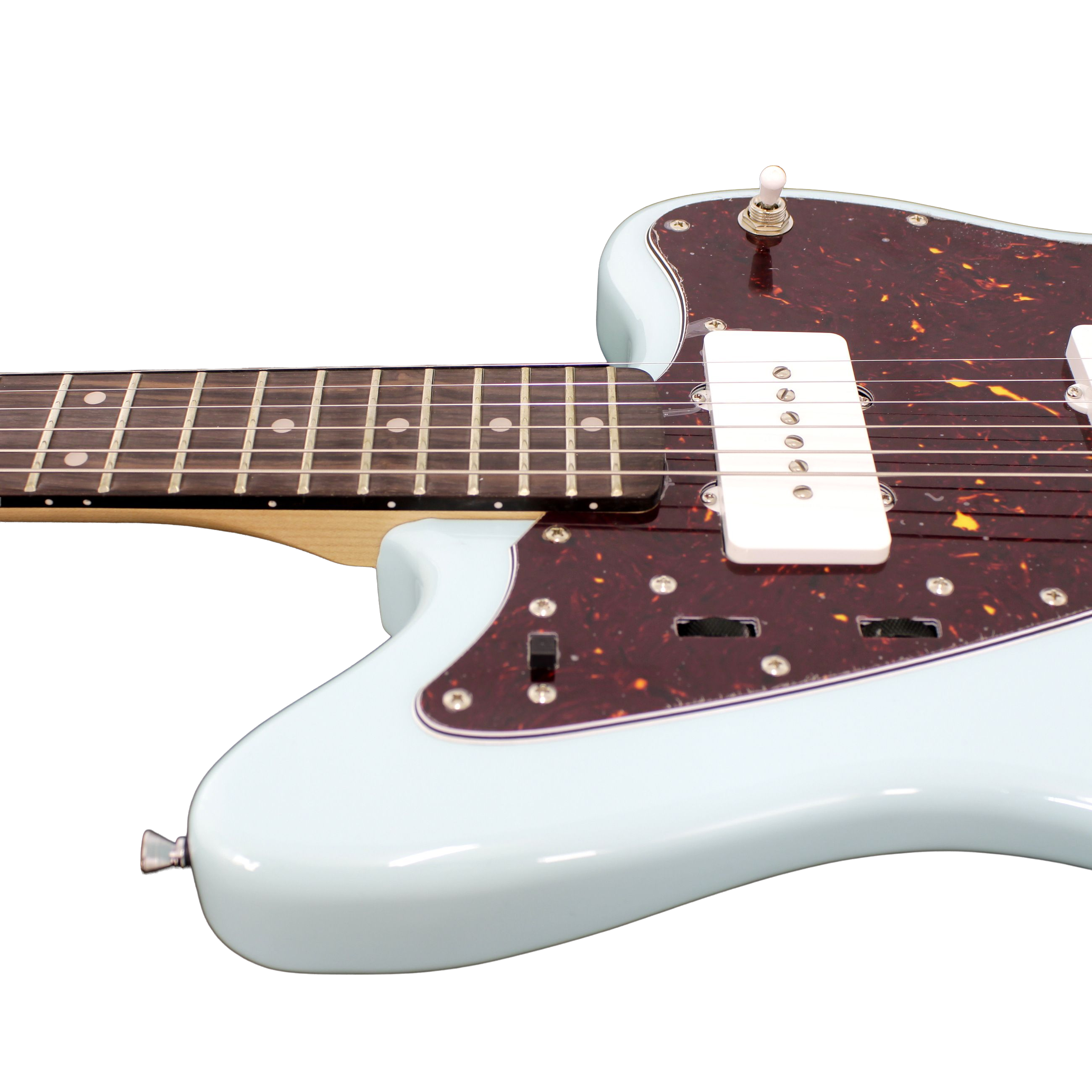 La Freeman Jazzmaster incorpora un puente de trémolo estilo vintage que permite añadir vibratos expresivos y texturas atmosféricas con una respuesta suave y controlada. Sus clavijas blindadas tipo Die-Cast aseguran que la tensión de las cuerdas permanezca estable incluso tras el uso de la palanca, reduciendo la necesidad de ajustes constantes. Con controles simplificados de volumen y tono, junto a un selector de 3 posiciones, el músico posee el dominio absoluto sobre la dinámica de su cápsula, consolidando a este modelo como una herramienta versátil, robusta y con un estilo visual que no pasa desapercibido en ningún escenario.