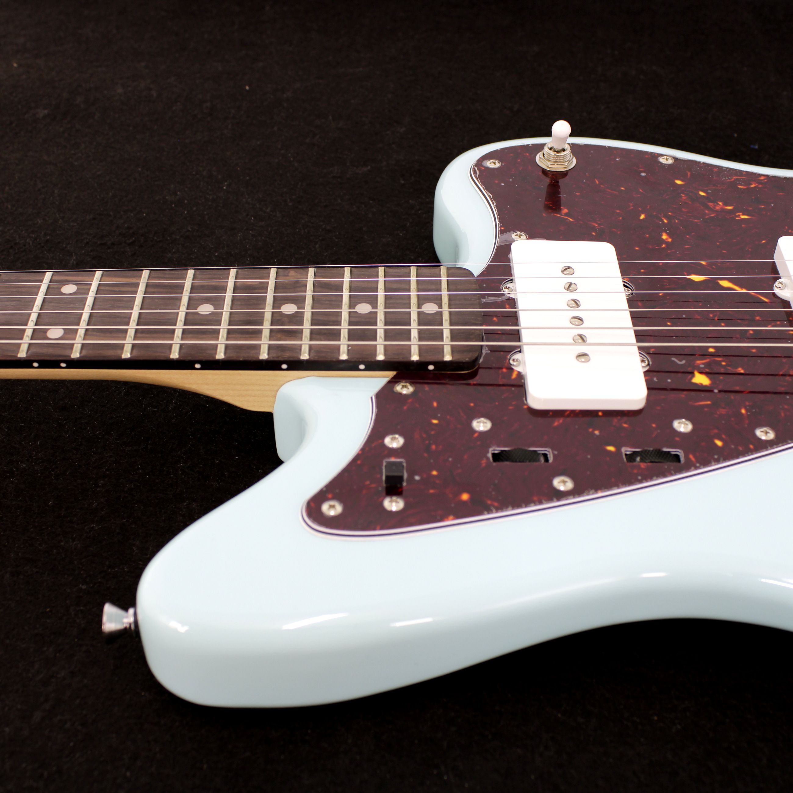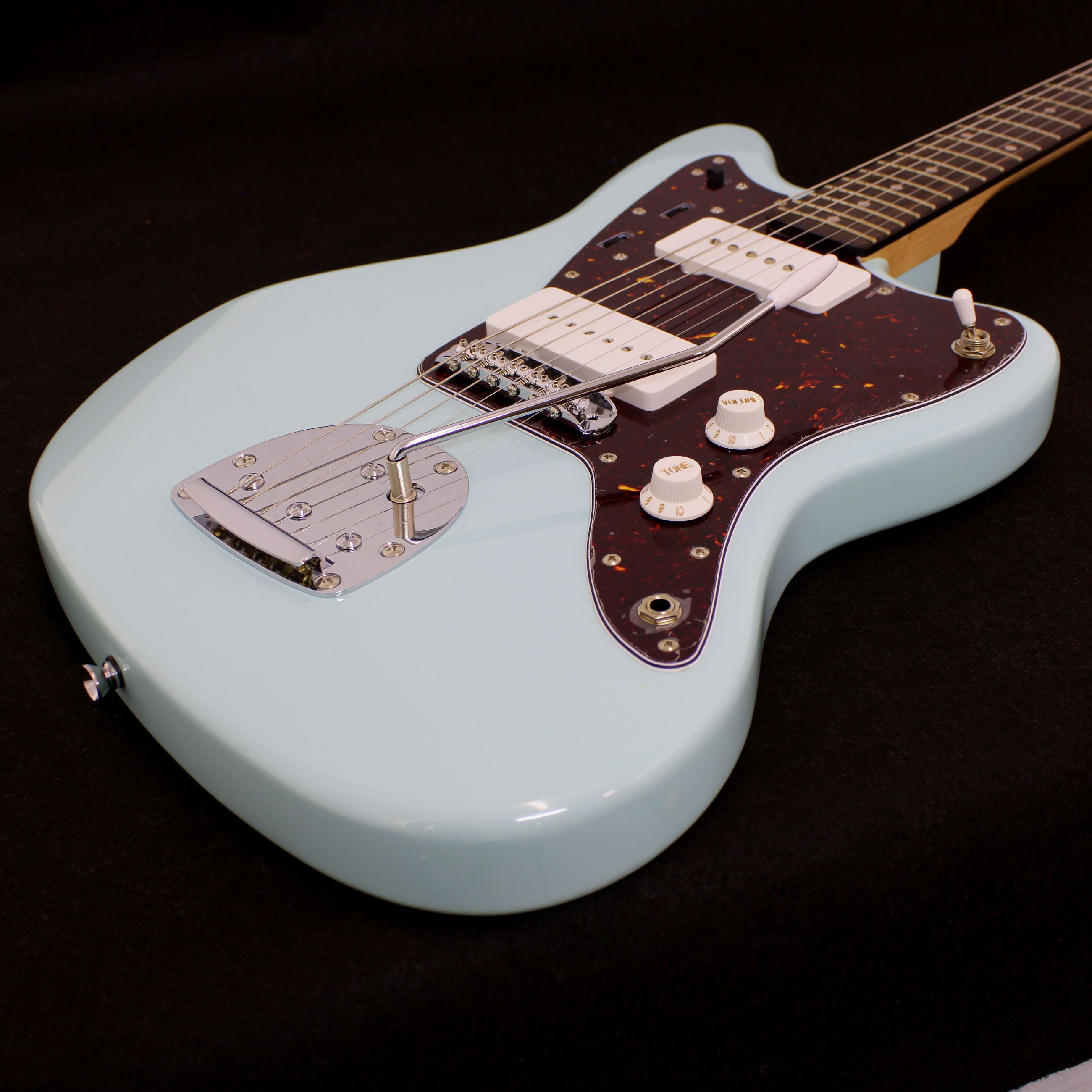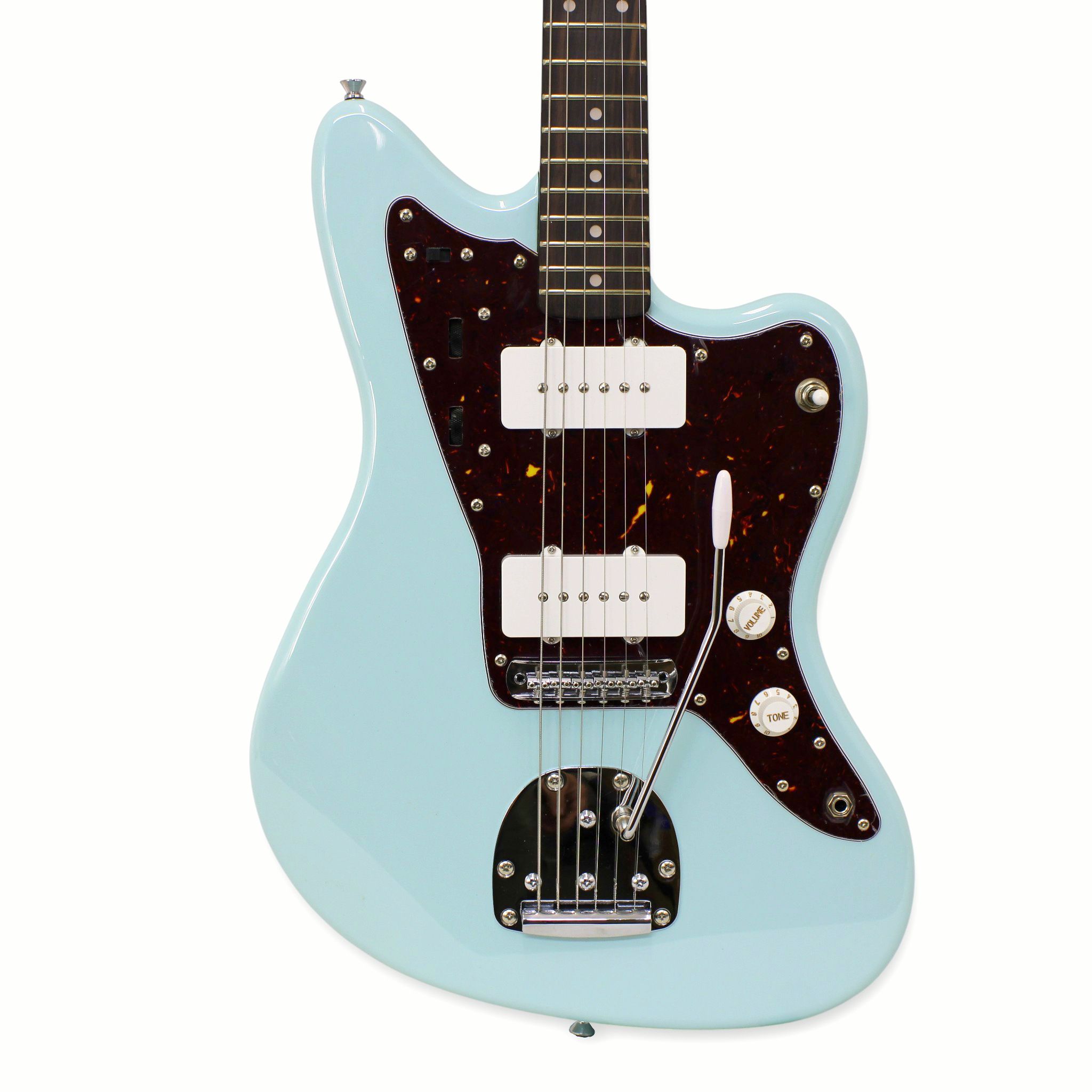 La JMZ cuenta con afinadores vintage cerrados que entregan estabilidad y una estética clásica, además de un elegante pickguard que resalta su diseño tradicional.