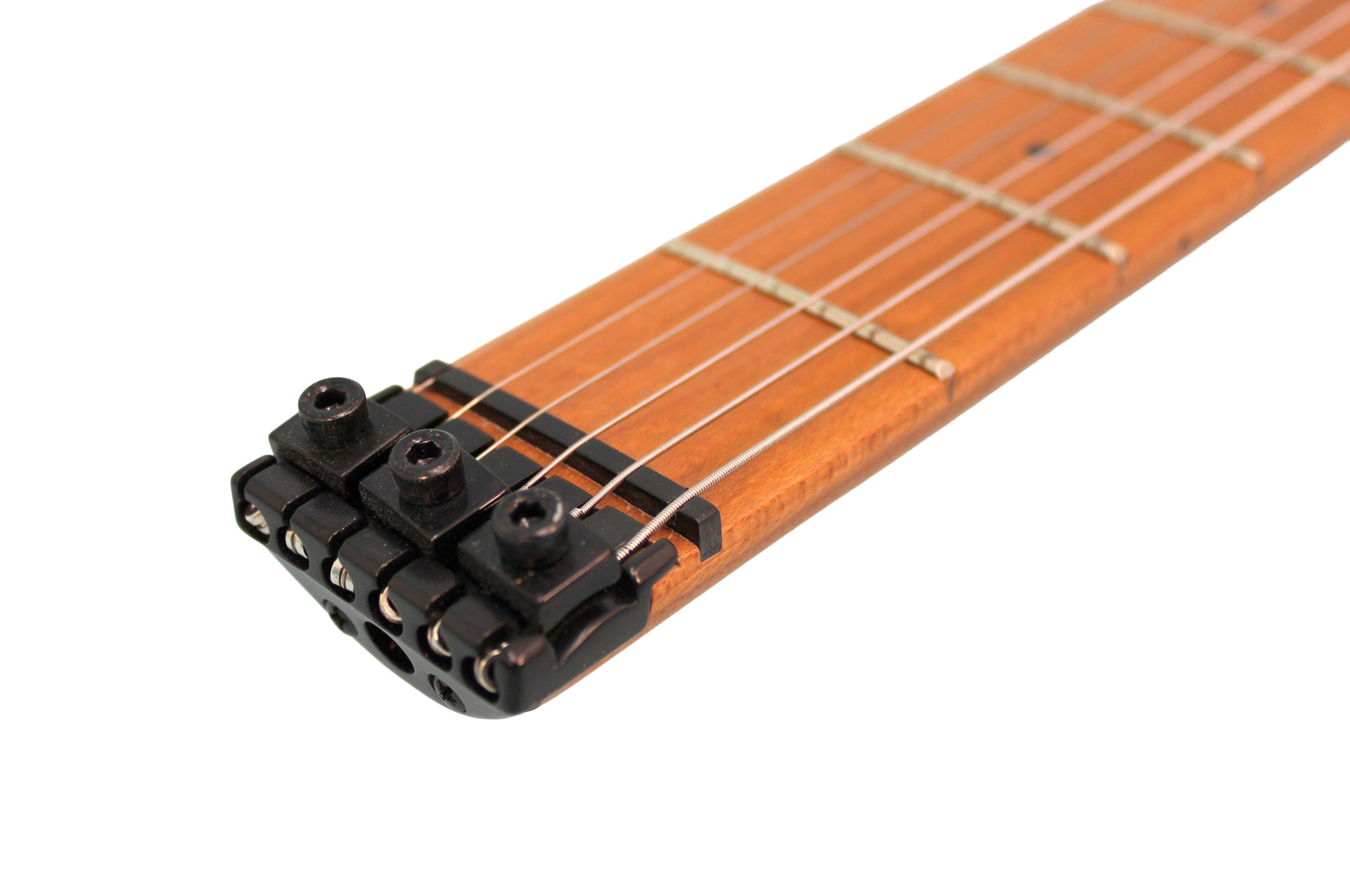 El sistema de puente Guyker W2004 es el núcleo funcional de esta guitarra sin cabeza, integrando las funciones de puente y clavijas en una sola unidad de alta ingeniería. Este diseño permite una microafinación extremadamente precisa y facilita el cambio de cuerdas, eliminando los puntos de fricción comunes en las cejuelas tradicionales. Gracias a su Locking Nut, la tensión se mantiene inalterable incluso ante ejecuciones enérgicas, consolidando a la HG10 como una cápsula de innovación que combina un rendimiento técnico impecable con un estilo visual minimalista y profesional.