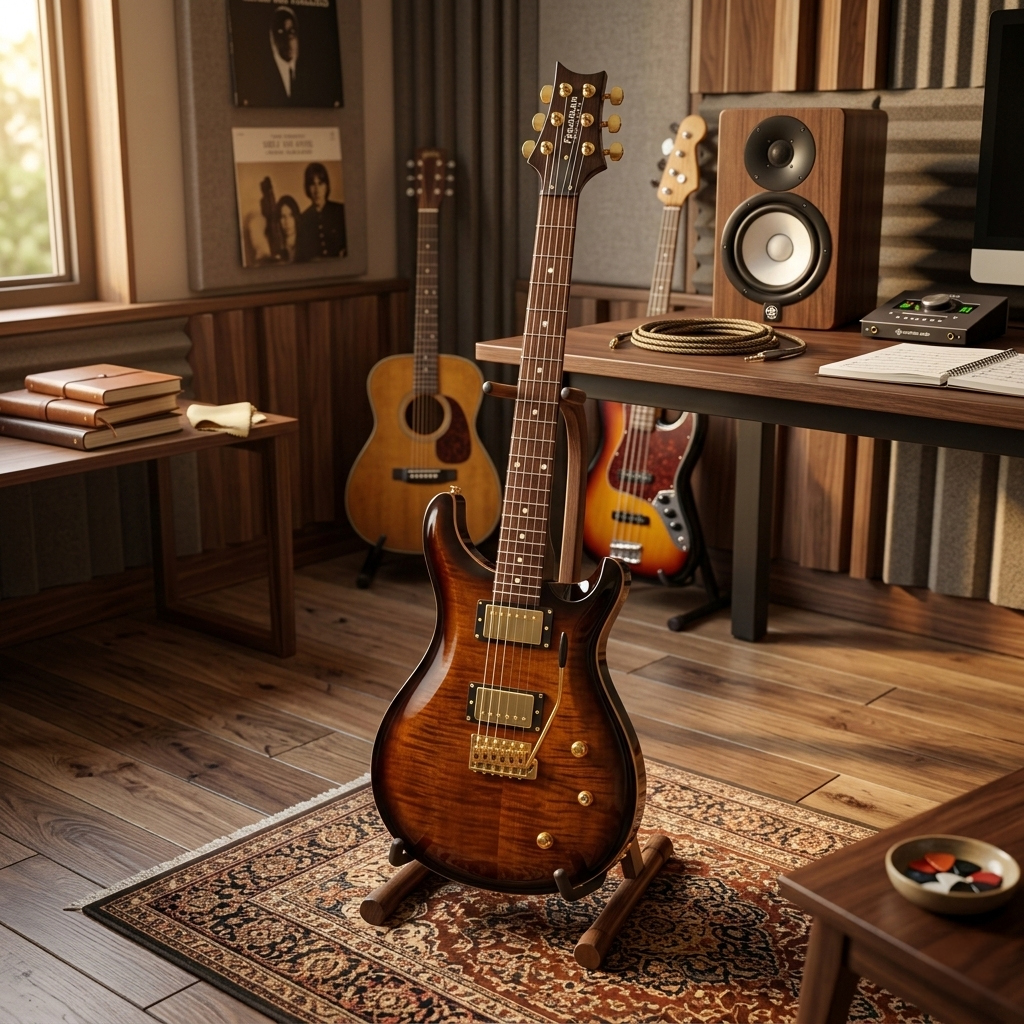 El compromiso con la calidad se refleja en cada componente del hardware. El puente trémolo sincronizado permite añadir matices vibratos con una acción fluida, mientras que las clavijas Die-Cast aseguran que la entonación permanezca firme durante sesiones intensas. El acabado brillante Calima, combinado con el hardware dorado, otorga a la guitarra una presencia escénica elegante y sofisticada. Esta combinación de materiales de primera calidad y diseño funcional convierte a la Freeman Sky Series en una inversión segura para el guitarrista que busca un instrumento fiable, estéticamente impactante y técnicamente superior para elevar su nivel de interpretación profesional.