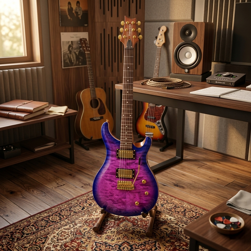 El compromiso con la calidad se refleja en cada componente del hardware. El puente trémolo sincronizado permite añadir matices vibratos con una acción fluida, mientras que las clavijas Die-Cast aseguran que la entonación permanezca firme durante sesiones intensas. El acabado brillante Twilight, combinado con el hardware dorado, otorga a la guitarra una presencia escénica elegante y sofisticada. Esta combinación de materiales de primera calidad y diseño funcional convierte a la Freeman Sky Series en una inversión segura para el guitarrista que busca un instrumento fiable, estéticamente impactante y técnicamente superior en su categoría.