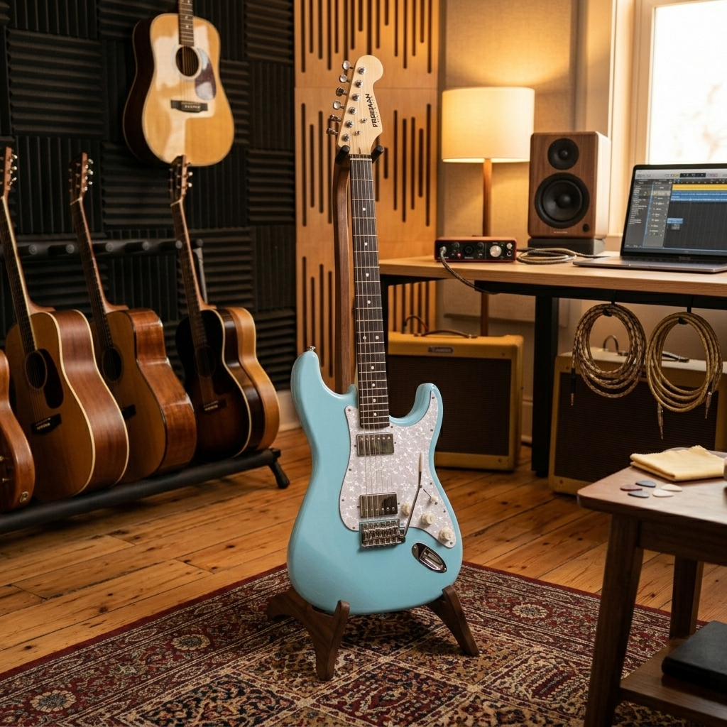 El acabado brillante en color Daphne Blue no solo evoca la era dorada de los instrumentos eléctricos, sino que actúa como una capa protectora contra la humedad y el uso constante. El hardware cromado complementa la estética visual, ofreciendo una resistencia probada contra la corrosión. Esta guitarra es la elección inteligente para quienes buscan un instrumento con personalidad visual y una arquitectura técnica pensada para el rendimiento. La Freeman Strat DHB es el punto de encuentro entre el diseño clásico y las necesidades del músico contemporáneo, entregando una experiencia de interpretación inspiradora y profesional desde el primer acorde.