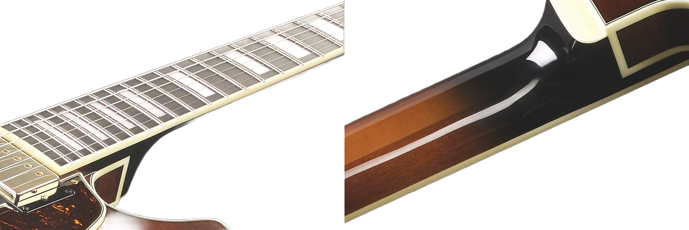 El corazón de la jugabilidad de esta Artcore Expressionist reside en su mástil encolado de 3 piezas de Nyatoh y Arce. Esta combinación de maderas garantiza una resistencia excepcional ante cambios climáticos y de humedad, manteniendo la integridad estructural del instrumento en giras y desplazamientos frecuentes. El diapasón de ébano Macassar complementa esta estructura aportando unos graves ajustados y un ataque rápido en el registro agudo, con un retorno sonoro equilibrado que corta a través de la mezcla en cualquier ensamble. El valor tangible para el guitarrista es una superficie de contacto suave y profesional que reduce la fatiga y potencia la precisión técnica en fraseos complejos de jazz, blues o rock.