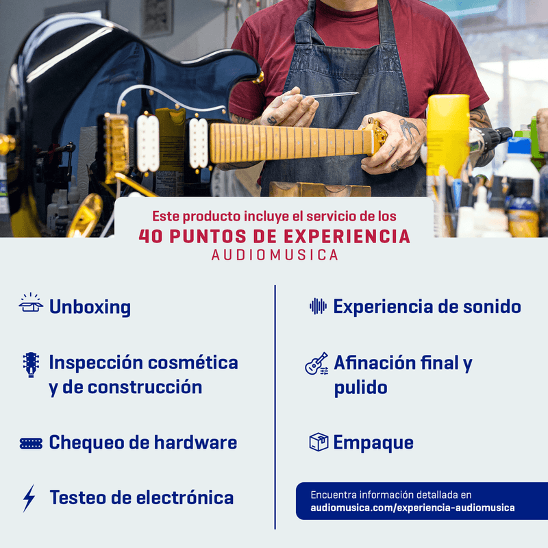 La guitarra se entrega con estuche rígido, asegurando protección total durante el transporte y almacenamiento.