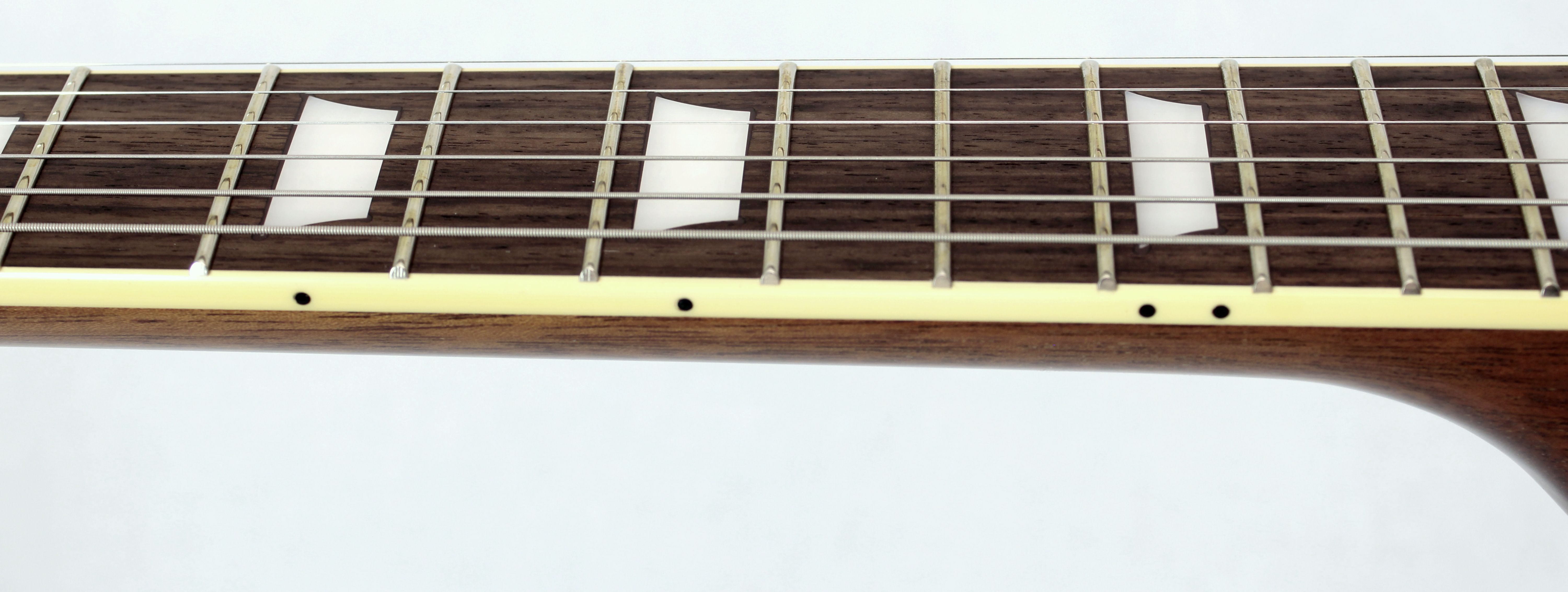 El diapasón de palo de rosa aporta calidez tonal, ataque controlado y una sensación natural al tacto. Está equipado con 22 trastes Sanko SBB-214, reconocidos por su durabilidad y precisión, garantizando una entonación consistente en todo el instrumento.
