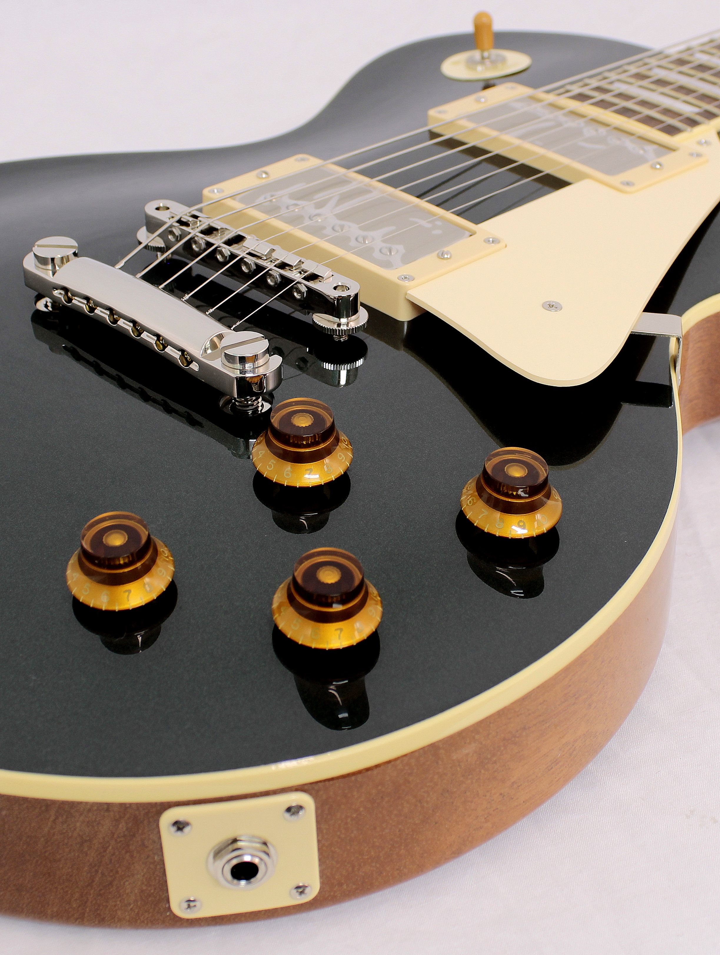 El cuerpo está construido con 2 piezas de arce y 2 piezas de caoba, una combinación que proporciona pegada, claridad y un rango medio sólido. Su acabado Sherwood Green Metallic con recubrimiento de poliuretano aporta una personalidad visual única, sofisticada y llamativa en cualquier ambiente. El ribete de color crema en la tapa mantiene ese toque clásico distintivo propio de la serie.