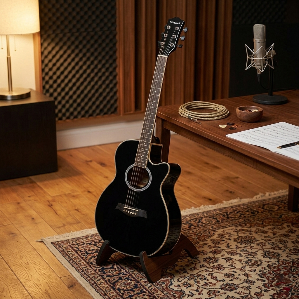 La guitarra electroacústica Freeman FRA95SCET en su versión delgada redefine la experiencia de tocar en vivo. Al combinar la profundidad tonal de la tapa de Abeto con un perfil de cuerpo Slim, este instrumento elimina la fatiga habitual en sesiones largas de grabación o actuaciones de pie. La forma Grand Auditorium garantiza una respuesta de frecuencia equilibrada, donde los medios se proyectan con claridad y los agudos mantienen un brillo cristalino. Para el músico activo, esto se traduce en una durabilidad estructural confiable y un manejo mucho más ágil durante los traslados diarios, permitiendo un control superior sobre el instrumento sin sacrificar la potencia real acústica.