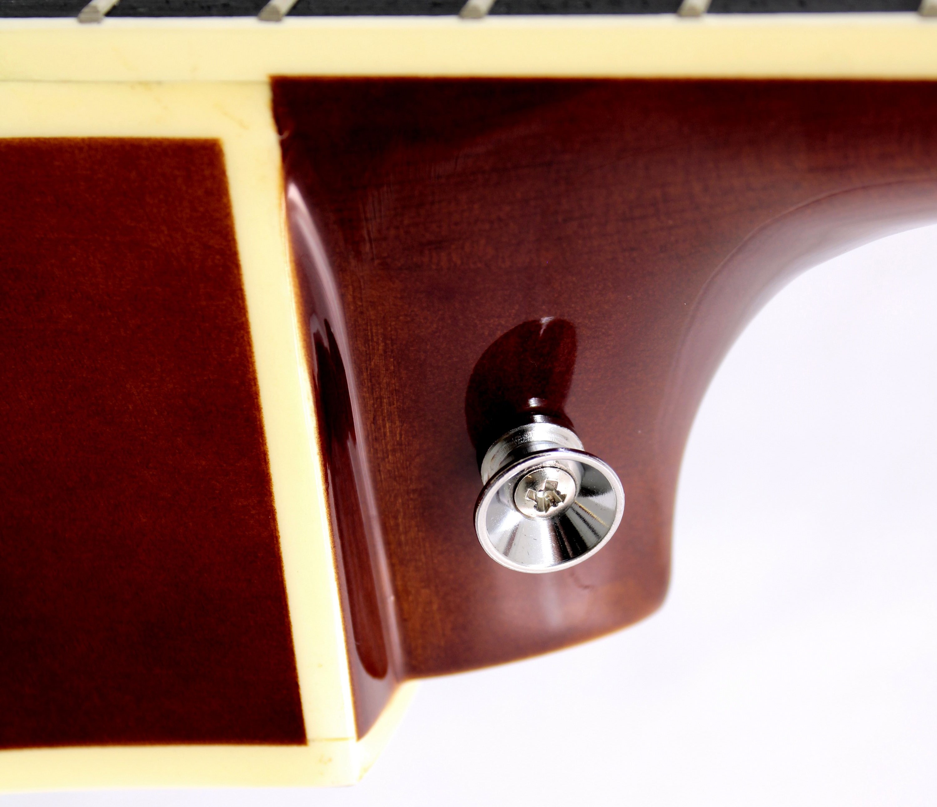 Los botones para correa, de tamaño estándar permiten una sujeción de correa estándar para guitarra.