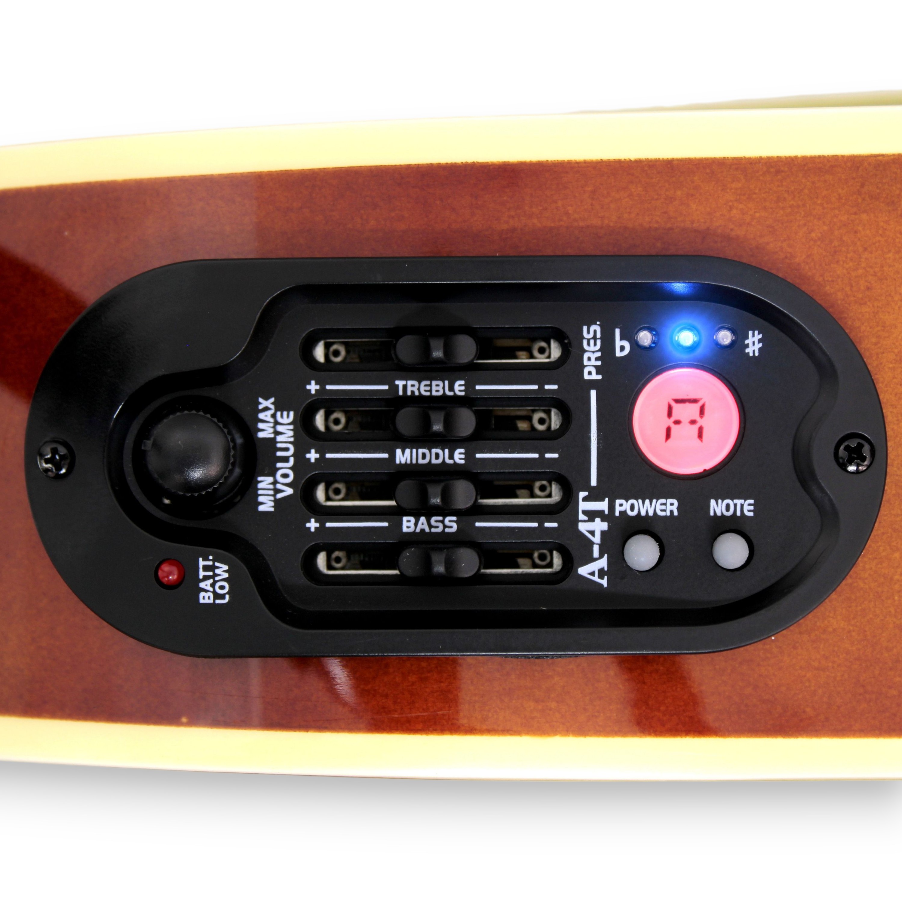 La FRA95SCET viene con un preamplificador y cápsula piezoeléctrica para conectar tu guitarra a cualquier amplificador y expandir su sonido.