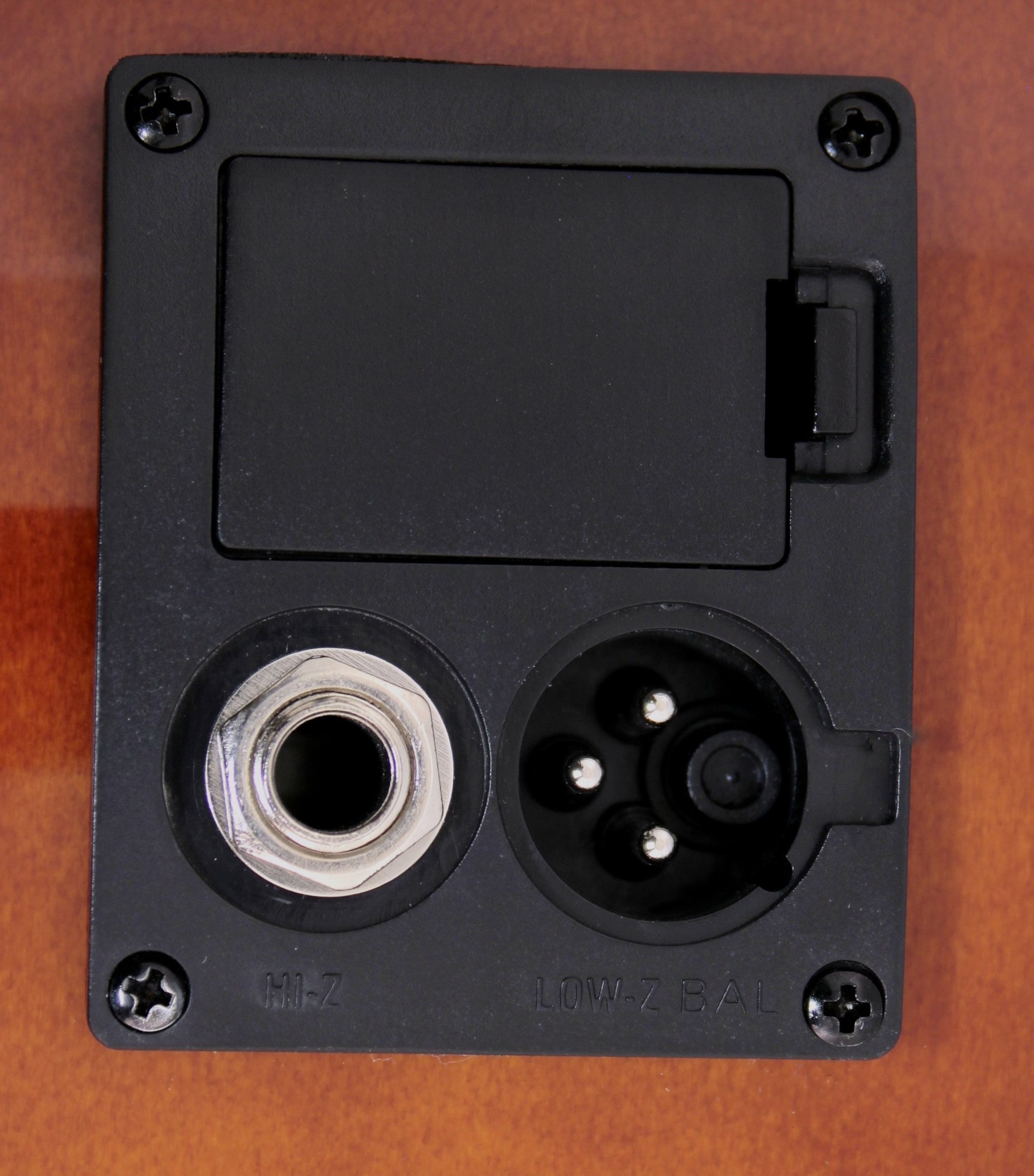 Posee salida de audio en jack 1/4" y salida balanceada XLR con sensor de autoapagado al momento de desconectar el cable, junto a su portabatería de 9 voltios de fácil acceso.
