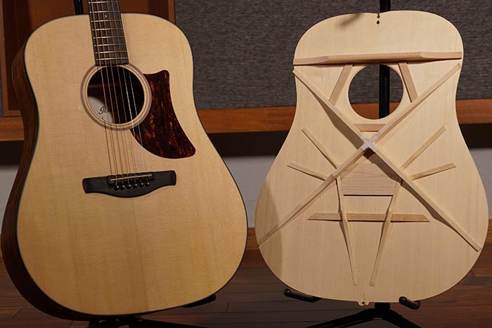 El sapele utilizado en el fondo y los aros aporta calidez tonal y una respuesta equilibrada, complementando la claridad de la tapa de abeto para generar un sonido completo y versátil.