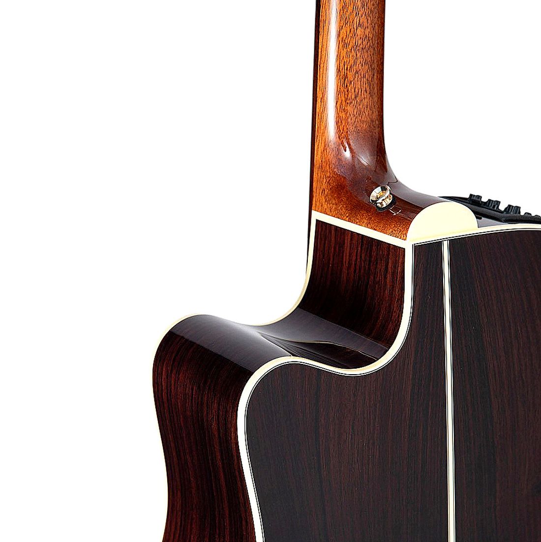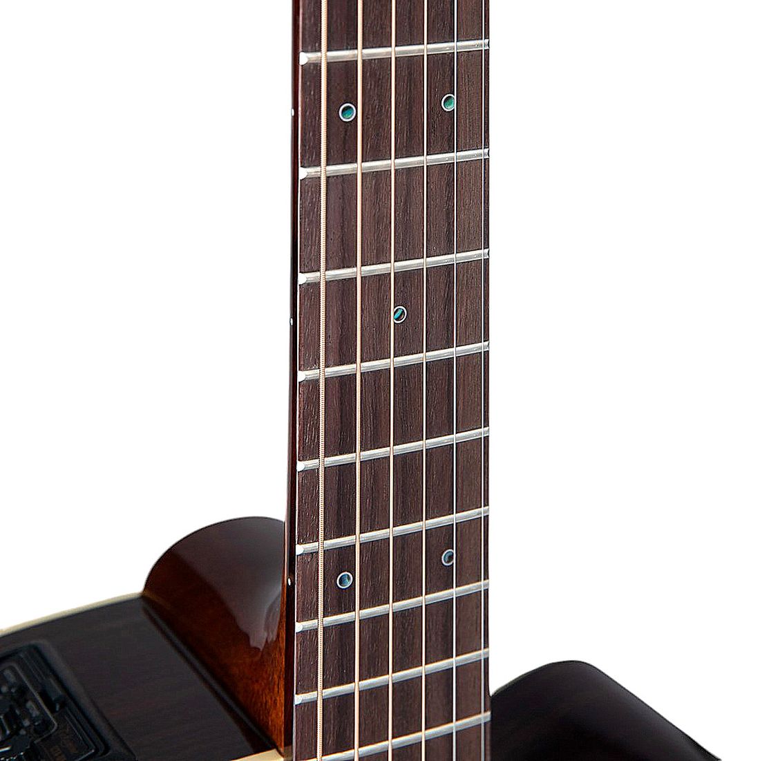 Otras características que mejoran el rendimiento incluyen un cómodo corte veneciano para un fácil acceso a los tramos superiores del diapasón, y el puente de hueso dividido proporciona una entonación más precisa, mientras que el posicionamiento del pasador del puente optimiza el ángulo de quiebre para mejorar el sustain y la presencia.