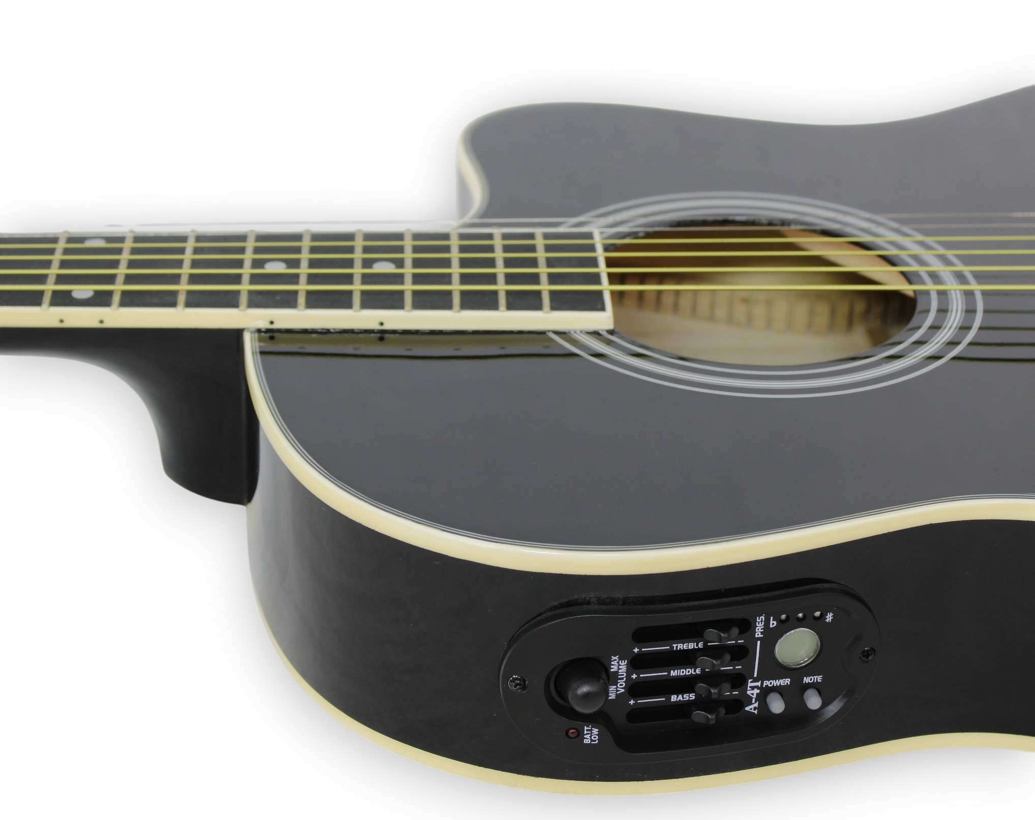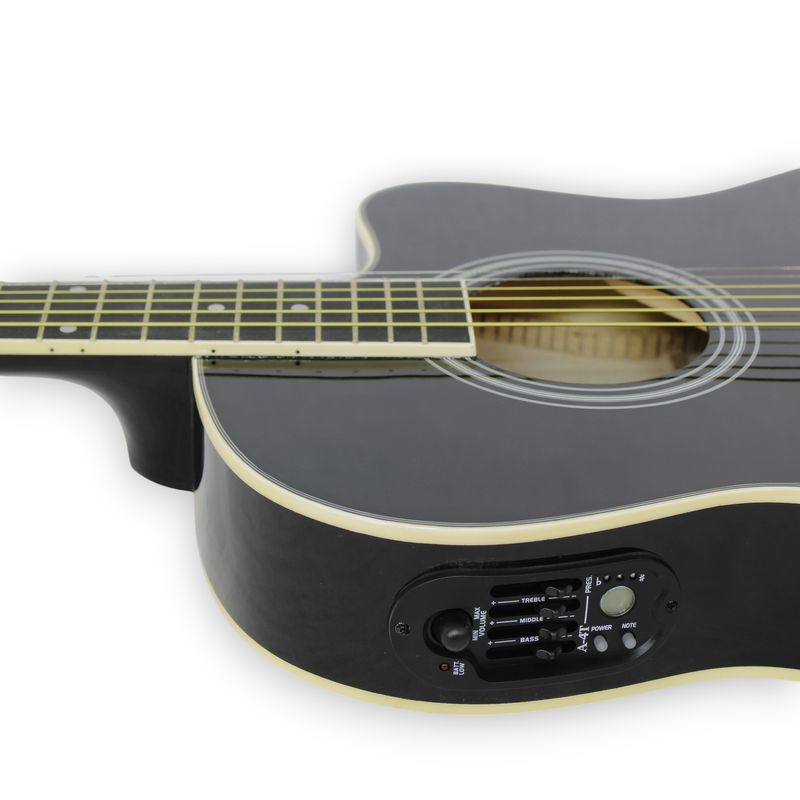 Incorpora sistema electroacústico integrado, permitiendo conectar la guitarra directamente a amplificadores, sistemas de sonido o interfaces de grabación, ampliando sus posibilidades de uso en ensayos, presentaciones en vivo o estudio. Los controles integrados permiten ajustar el carácter del sonido de forma práctica y directa.