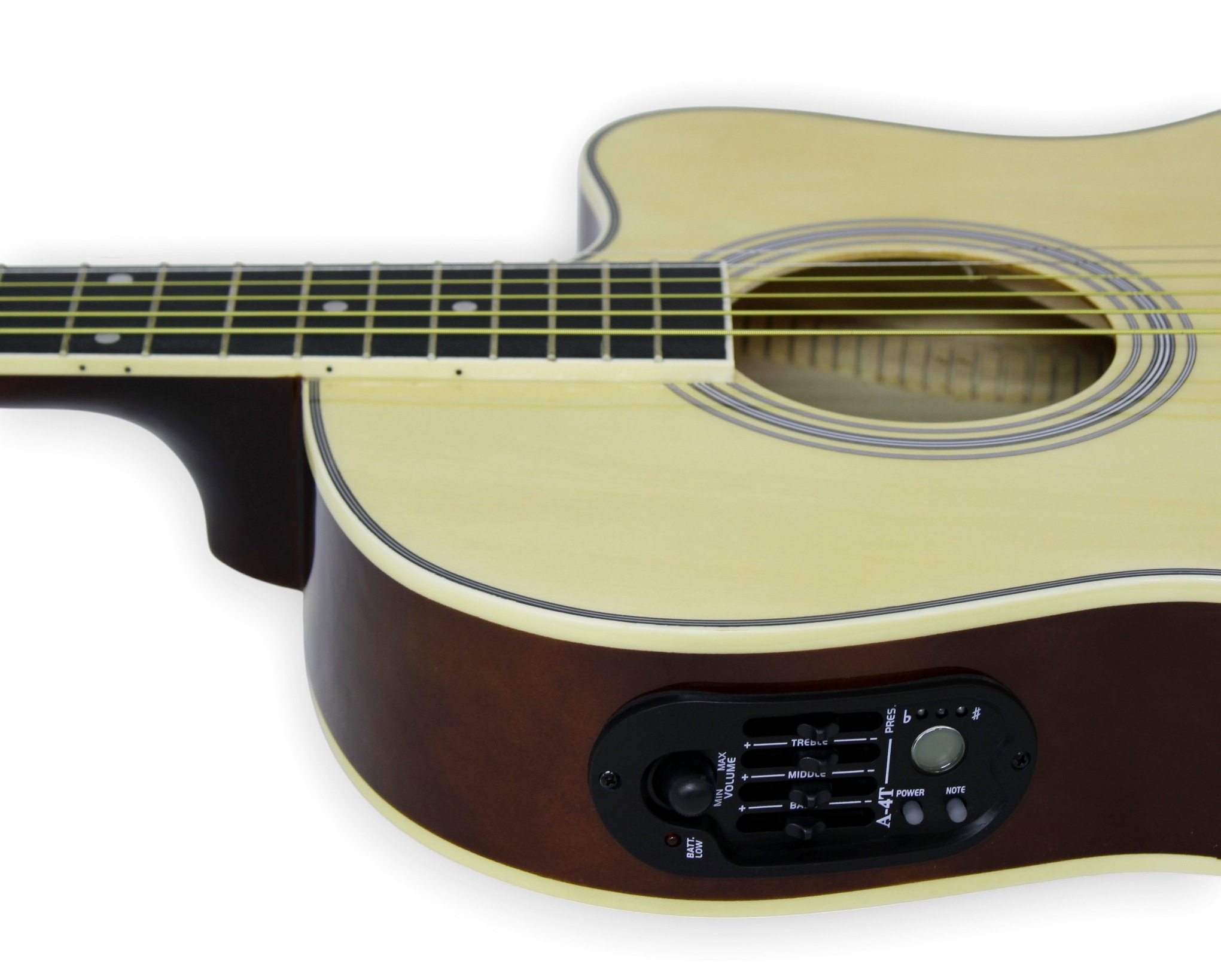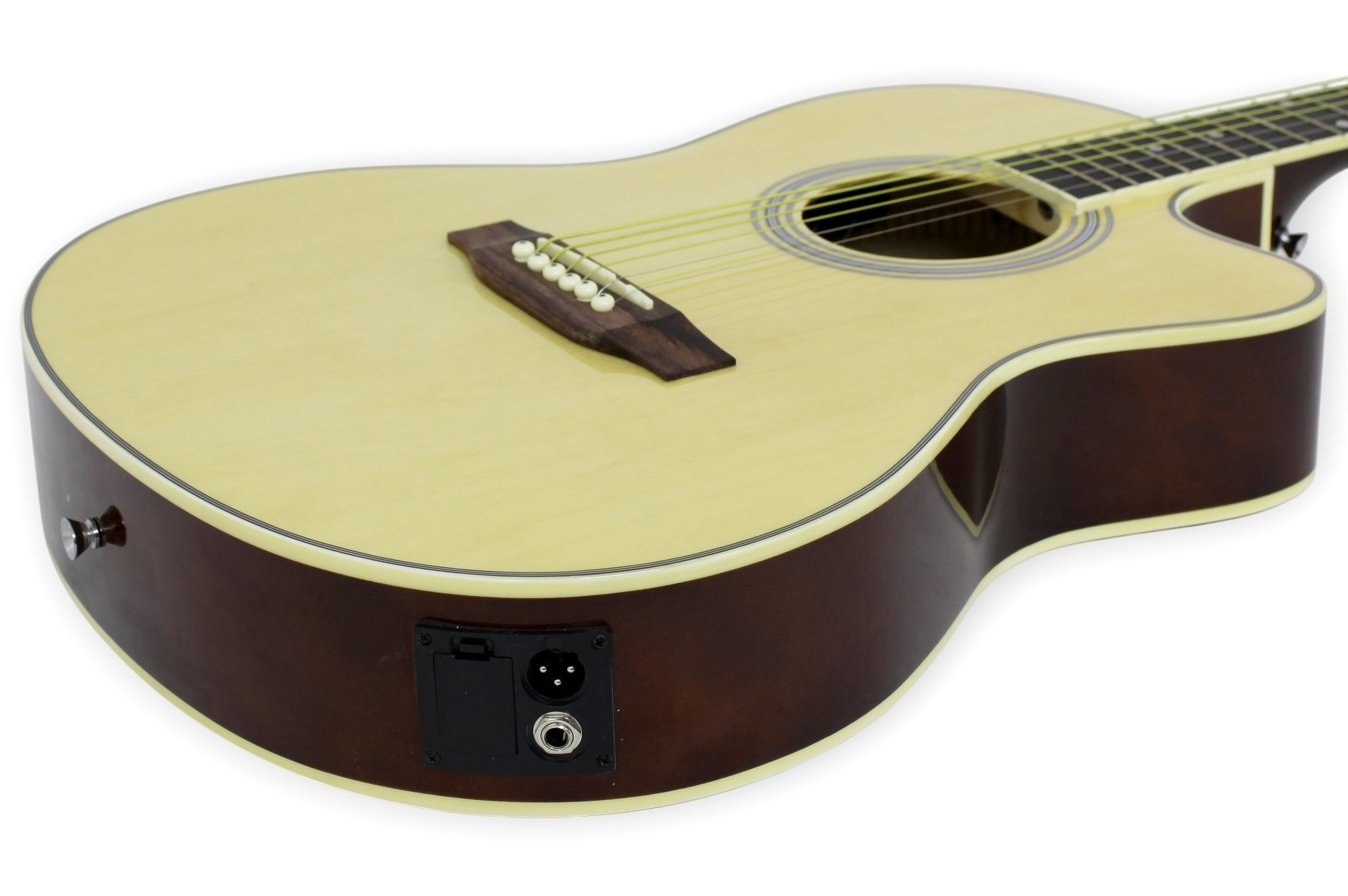 Incorpora sistema electroacústico integrado, permitiendo conectar la guitarra directamente a amplificadores, sistemas de sonido o interfaces de grabación, ampliando sus posibilidades de uso en ensayos, presentaciones en vivo o estudio. Los controles integrados permiten ajustar el carácter del sonido de forma práctica y directa.