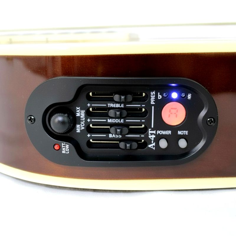 Incorpora sistema electroacústico integrado, permitiendo conectar la guitarra directamente a amplificadores, sistemas de sonido o interfaces de grabación, ampliando sus posibilidades de uso en ensayos, presentaciones en vivo o estudio. Los controles integrados permiten ajustar el carácter del sonido de forma práctica y directa.