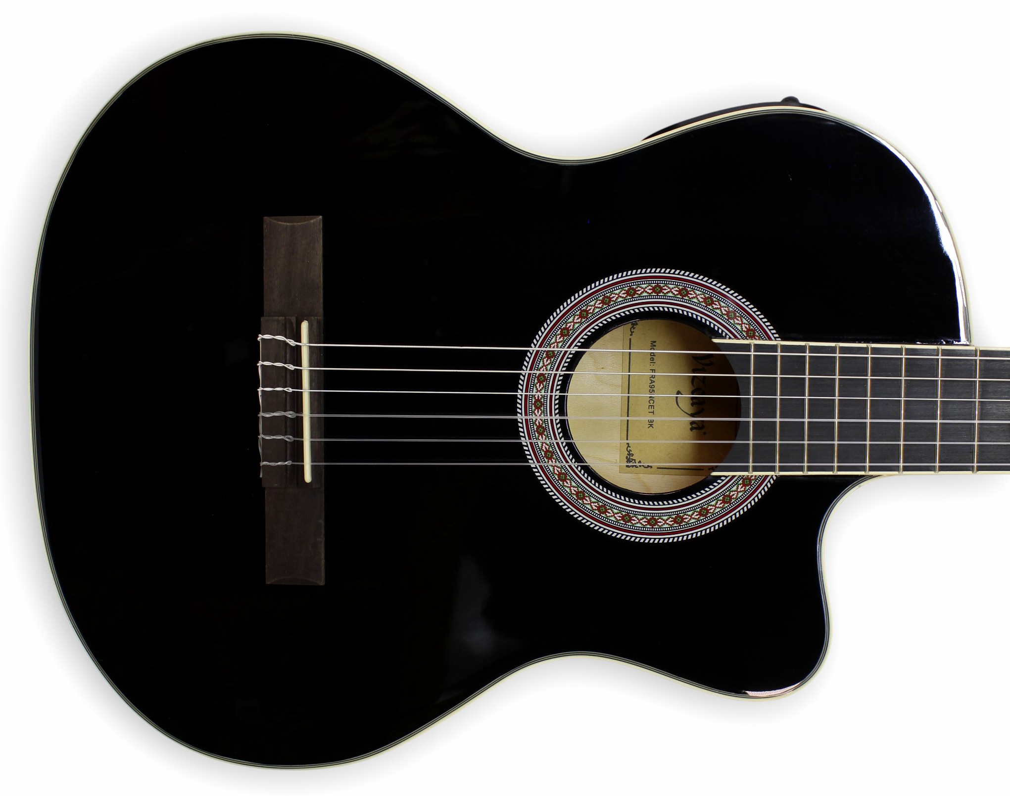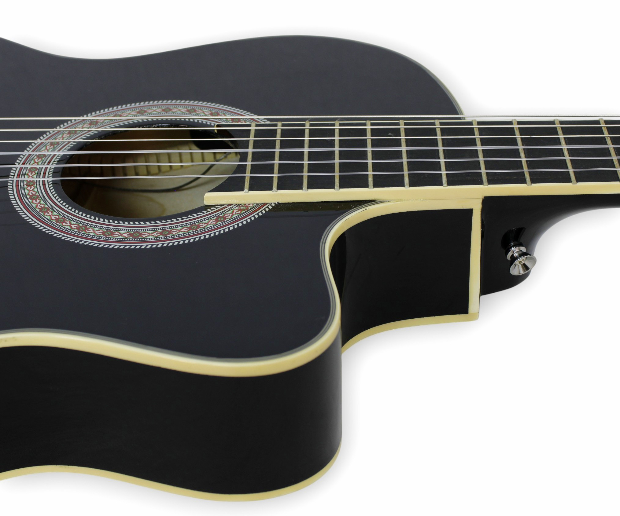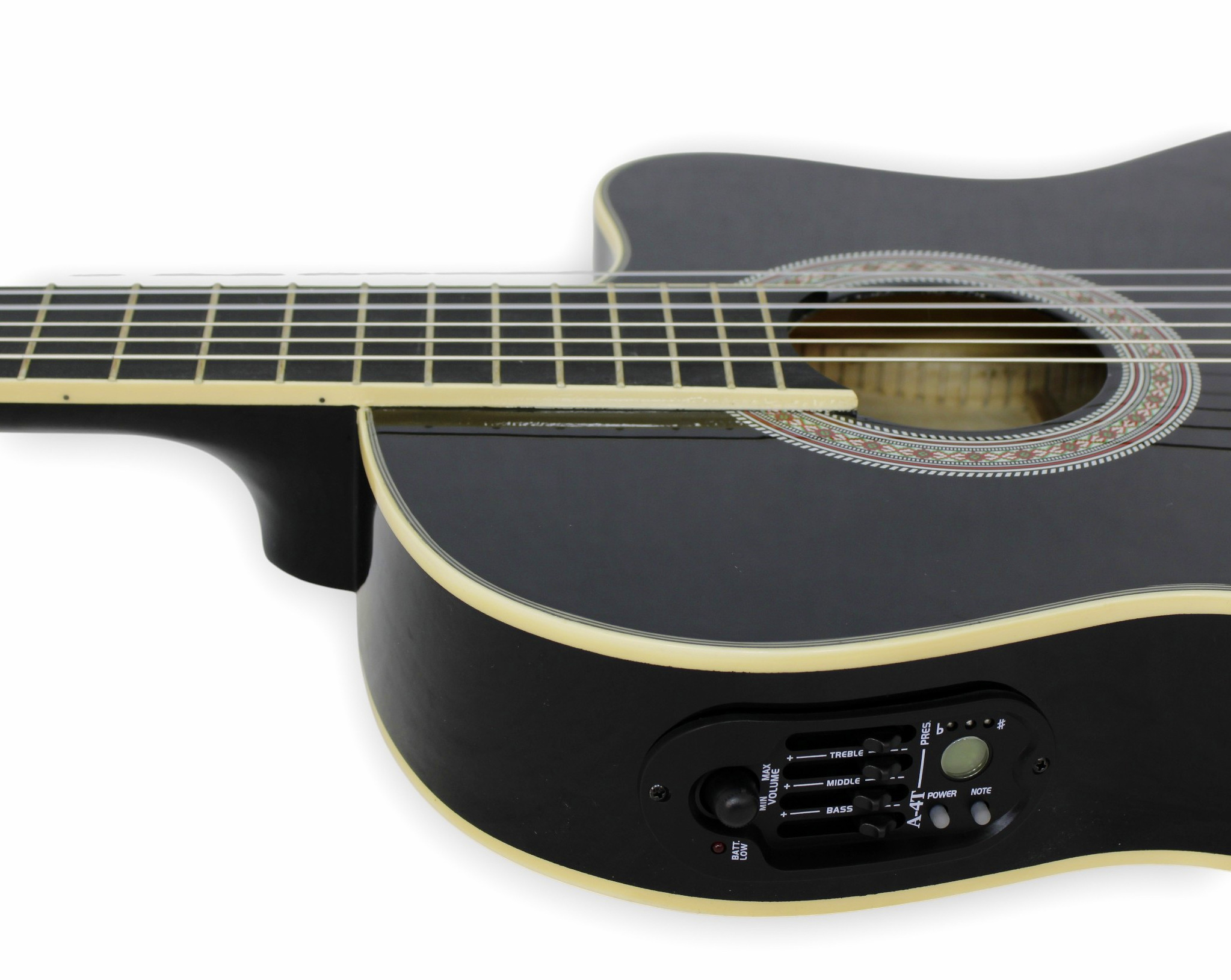 Incluye un preamplificador modelo A-4T, equipado con una cápsula piezoeléctrica que permite conectar la guitarra directamente a amplificadores, consolas o sistemas de sonido. El sistema incorpora ecualizador de 3 bandas, control de volumen, control de presencia, afinador integrado e indicador de batería baja, ofreciendo un manejo práctico y completo del sonido.