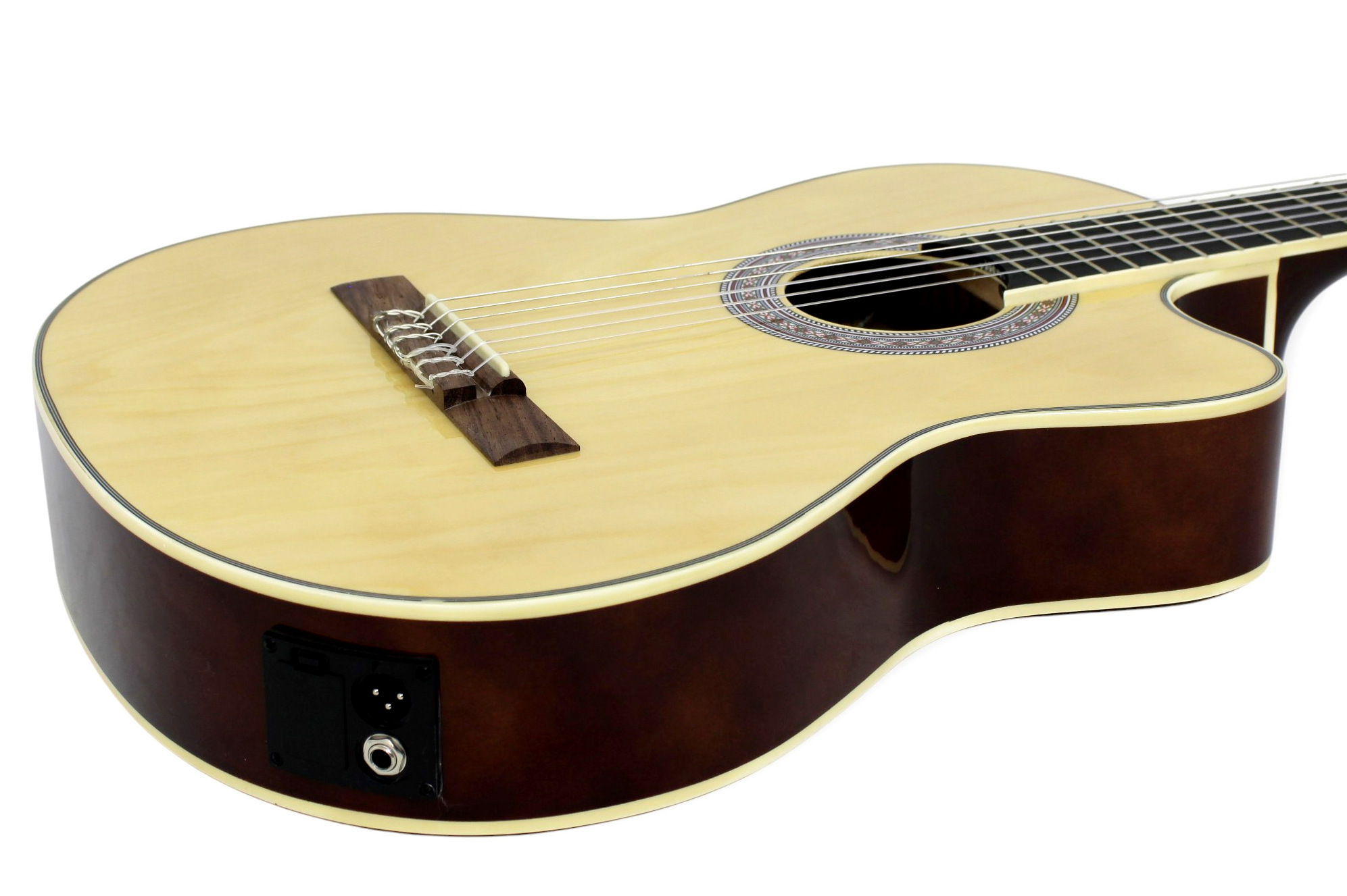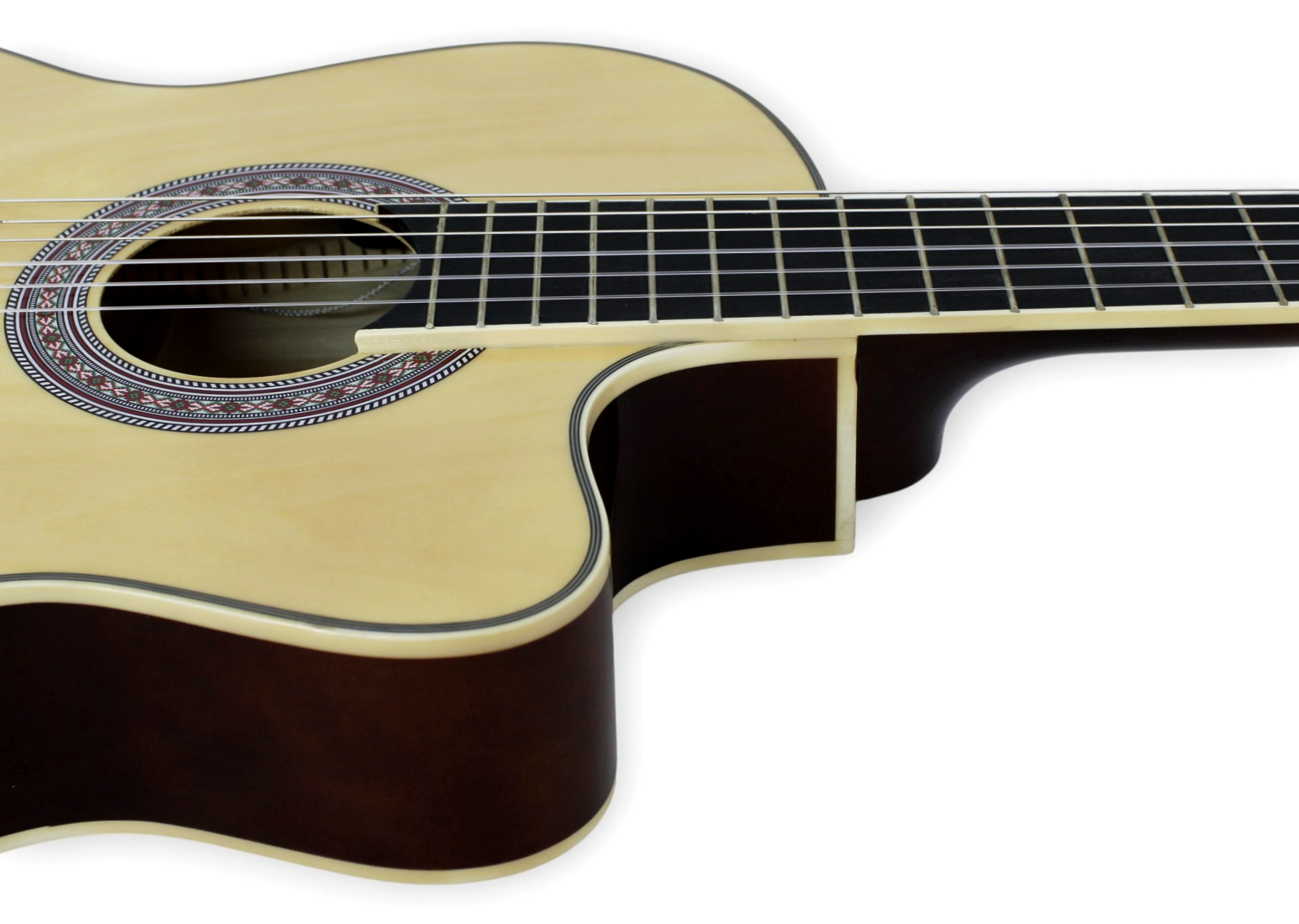 Este modelo de guitarra clásica electroacústica con cuerdas de nylon ha sido diseñado para acompañar a músicos principiantes e intermedios que buscan un instrumento cómodo, equilibrado y con las ventajas de la amplificación integrada, ideal tanto para la práctica como para presentaciones en vivo.