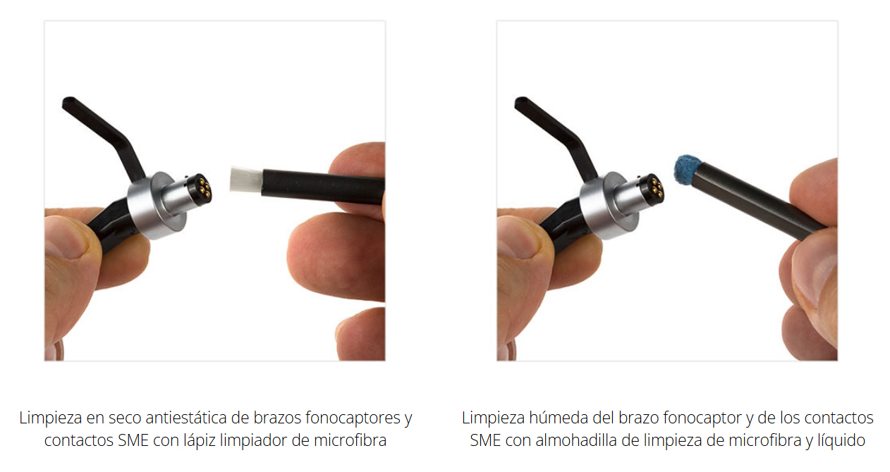 Olvídese de soluciones improvisadas. Este es un sistema de limpieza de audio profesional de dos componentes diseñado específicamente para las superficies de contacto del brazo y el cartridge. Incluye una brocha limpiadora de microfibra con propiedades antiestáticas para la limpieza en seco, ideal para remover el polvo superficial. Para la suciedad más persistente o los depósitos de grasa, el kit proporciona un pad de microfibra y un fluido limpiador especializado, logrando una limpieza húmeda profunda que revitaliza la conductividad.