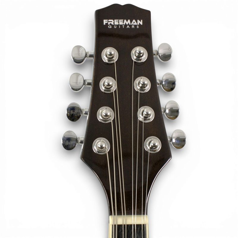 La Freeman MA-02FMG BK es una mandolina electroacústica diseñada para quienes buscan la esencia del sonido tradicional con la versatilidad de un sistema de amplificación integrado. Su elegante acabado en color negro brillante ofrece una estética sobria y moderna, ideal tanto para presentaciones como para estudios o prácticas.