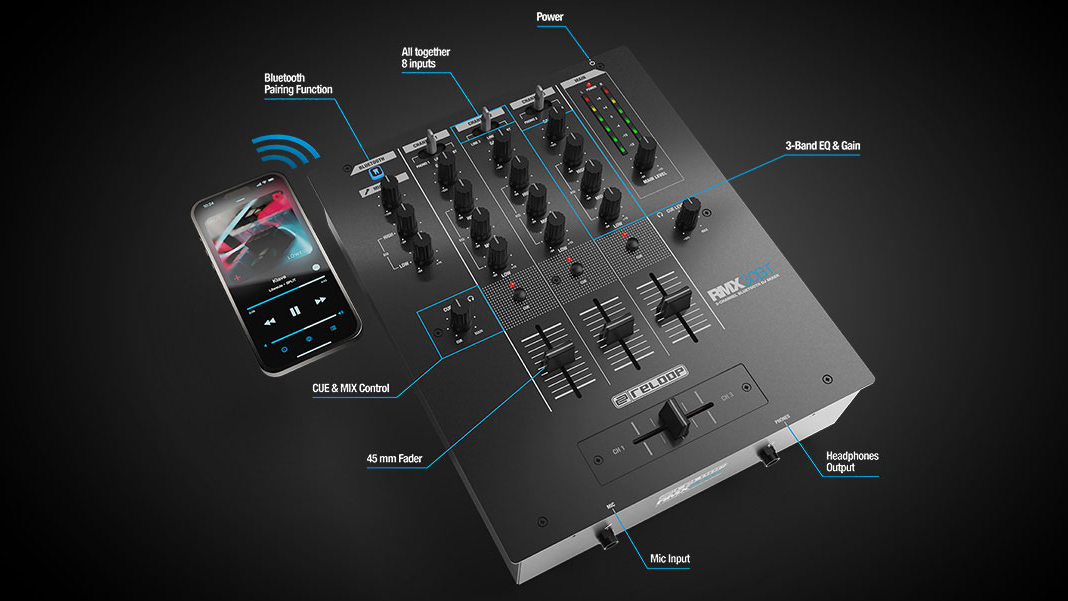 El Reloop RMX-30 BT es el mixer DJ todo en uno ideal para el DJ que busca flexibilidad y un rendimiento robusto tanto en el home studio como en eventos pequeños. Este equipo combina características avanzadas con una construcción duradera, siendo la puerta de entrada perfecta al mundo de la mezcla profesional para principiantes y un equipo de audio confiable para DJs con experiencia que valoran la sencillez y la conectividad.