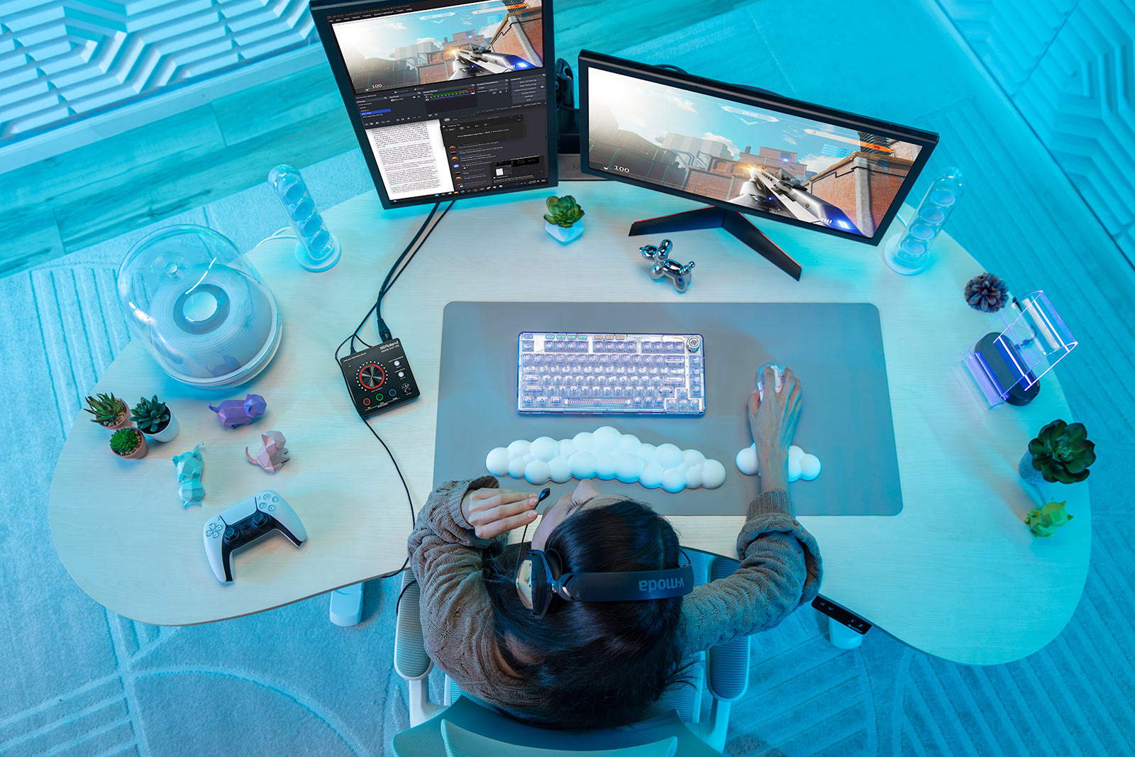 Mejora los sonidos del juego y domina a tus rivales con presets Game EQ personalizables. Activa una mezcla a medida que destaca partes del audio cruciales, o bien crea una mezcla diferente para el streaming que refuerce tu interacción online. Además, un limitador baja automáticamente los sonidos fuertes del juego, como disparos o explosiones, mitigando la fatiga auditiva en sesiones prolongadas.