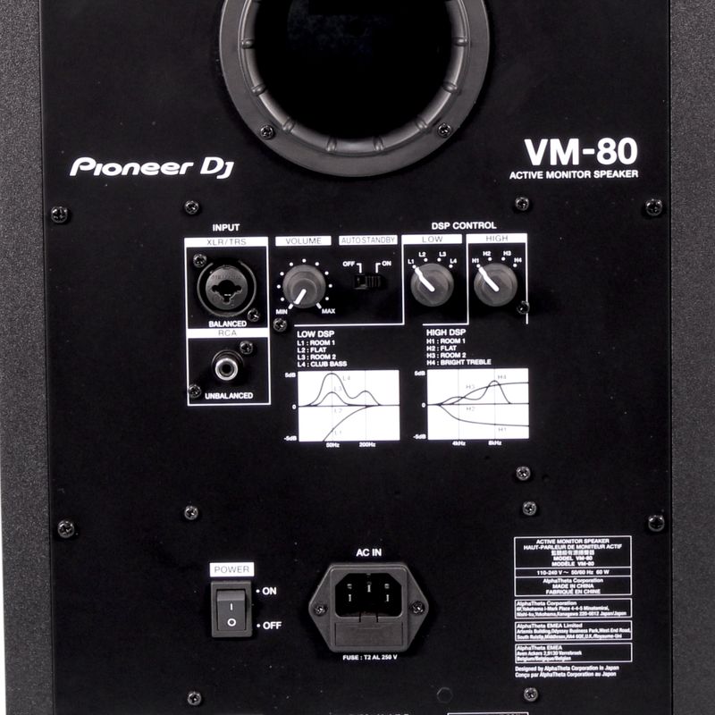Los parlantes de la serie VM tienen una sonorización plana para garantizar que se escuche el sonido natural de la música. Para ayudarte a ajustar la salida y encontrar el sonido perfecto para el espacio en el que trabajas, cada parlante VM incluye ajustes DSP. En el panel trasero, encontrarás 2 perillas: Low EQ y High EQ (EQ de graves y EQ de agudos).