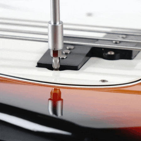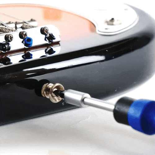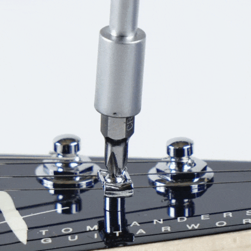 La punta de destornillador Phillips #1 es la indicada en la mayoría de los puentes, tanto de bajos como de guitarras y la punta plana es imprescindible para esos ajustes tradicionales y vintage.
