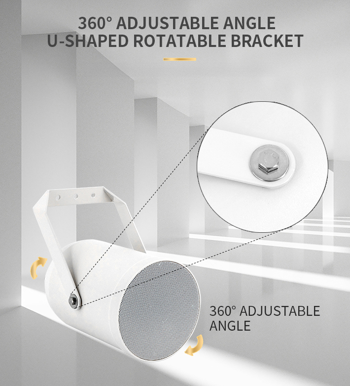 Construido con un chasis de plástico ABS resistente y con un índice de protección IP55, este altavoz está preparado para afrontar las demandas de diversos entornos, ya sean interiores o exteriores protegidos. La durabilidad es un factor crítico en el equipamiento de audio, y el material ABS en color blanco asegura que el parlante sea resistente y estéticamente discreto. Además, su diseño giratorio y la consola metálica de colgado facilitan una instalación precisa y segura, permitiendo orientar el flujo de sonido exactamente donde se necesita.
