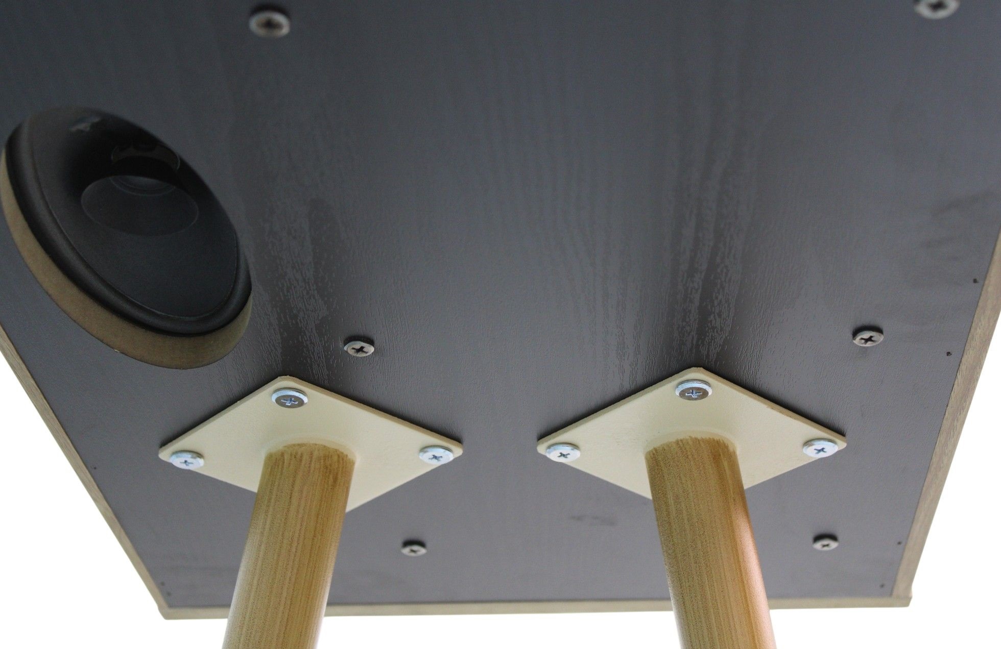 Su stand liviano de 4 patas atornillables lo hace fácil de armar. Las bases se adaptan a superficies irregulares gracias a una rótula interna, evitando deslizamientos y dando firmeza al piano.
