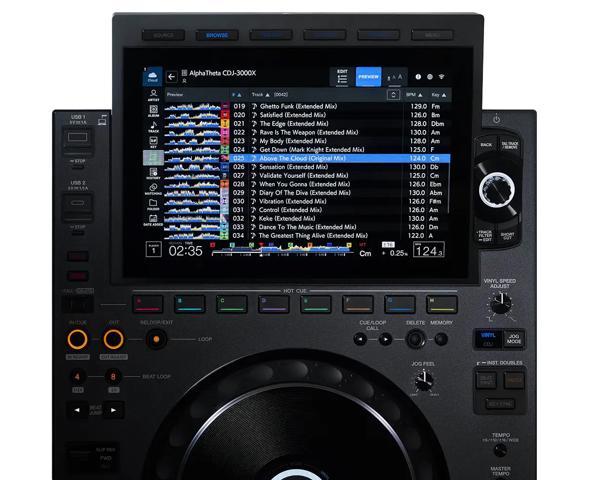 El Alphatheta CDJ-3000X redefine el estándar de la cabina de DJ, ofreciendo un salto cualitativo en rendimiento y creatividad musical. Este reproductor multimedia de élite está diseñado para el DJ profesional que exige fiabilidad absoluta, una calidad de sonido superior y la flexibilidad de las tecnologías cloud y streaming. Su potencia reside en un procesador de alto rendimiento y una interfaz de usuario completamente rediseñada que lo convierte en una extensión intuitiva de la mente del músico.