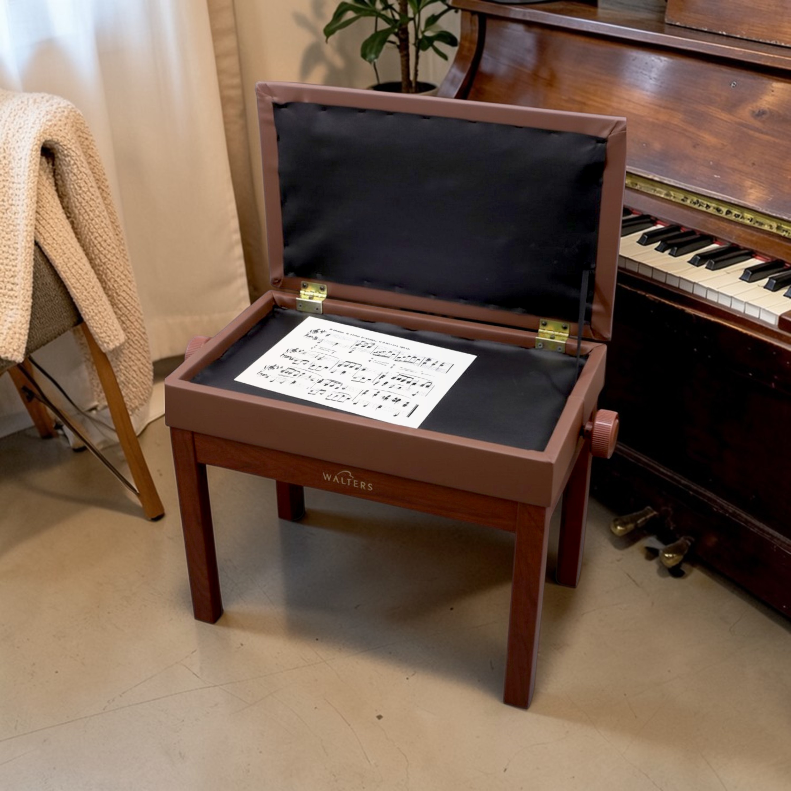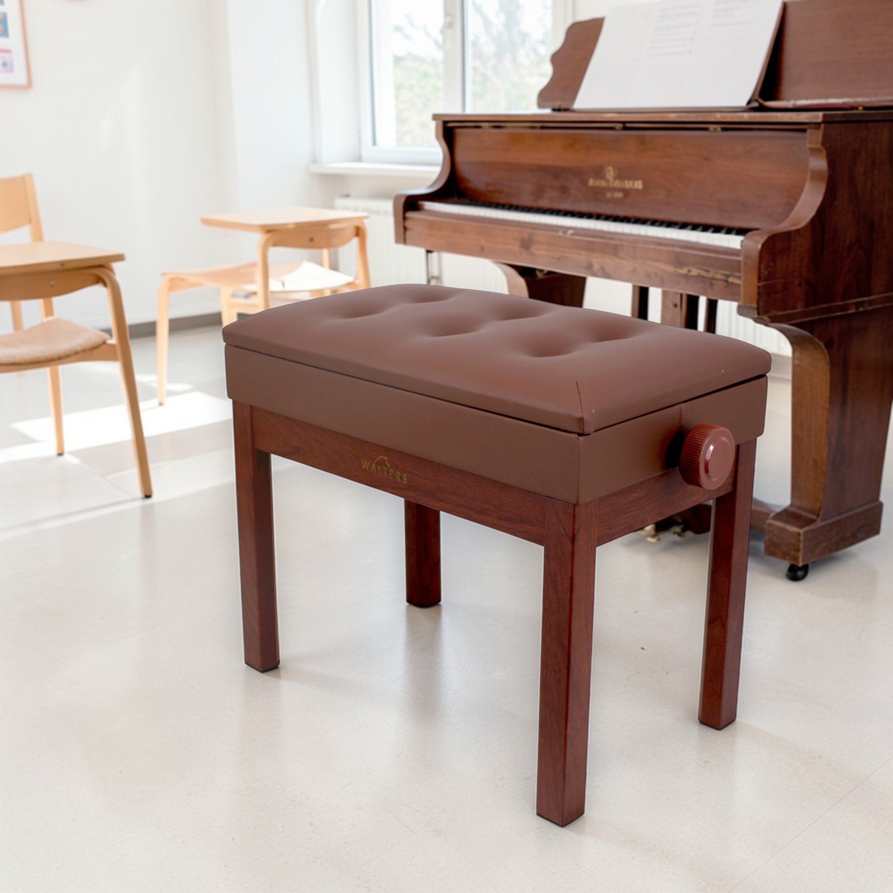 El sillín de piano Walters en color nogal (wallnut) está diseñado para ofrecer la mejor combinación entre comodidad, funcionalidad y estabilidad, convirtiéndose en un aliado ideal para pianistas de todos los niveles. Su diseño elegante y estructura robusta lo hacen adecuado tanto para estudio, práctica diaria o presentaciones.